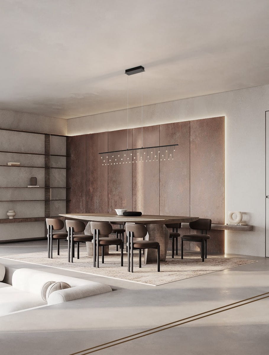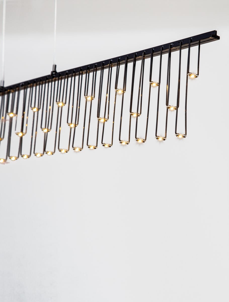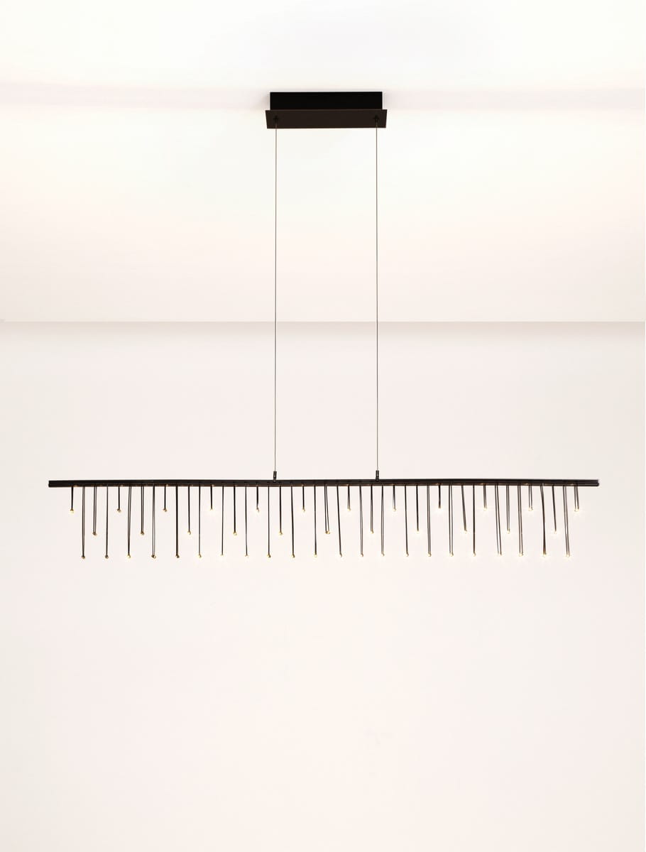 Lampa wisząca Huarez Line to wyjątkowa propozycja dla miłośników minimalistycznego, a zarazem luksusowego wzornictwa. Wykonana z wysokiej jakości metalu, dostępna w eleganckich wykończeniach – czarnym i złotym – wyróżnia się delikatnością formy i precyzją wykonania. Jej długi, prostokątny kształt harmonijnie uzupełniają subtelne, pionowe elementy dekoracyjne, które pięknie rozpraszają światło, nadając wnętrzu przytulny, ale i ekskluzywny charakter.