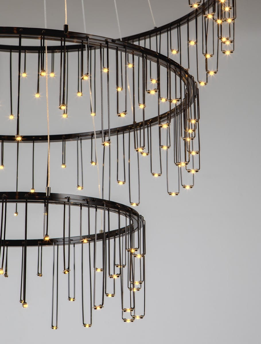 Huaraz double, z dwoma pierścieniami, doskonale sprawdzi się w mniejszych pomieszczeniach, nadając im elegancji i wyrazistości. Z kolei wersja triple, z trzema pierścieniami, imponuje rozmachem i jest idealnym wyborem do większych przestrzeni, takich jak salony, hole czy reprezentacyjne jadalnie.