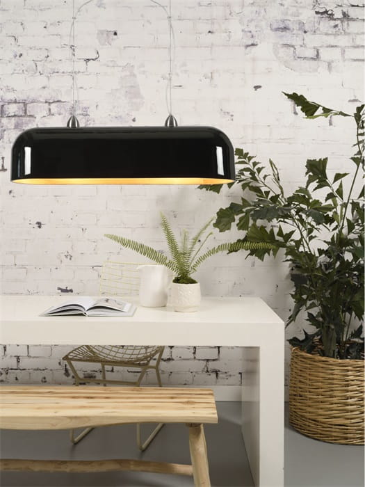 Lampa wisząca Halong H88 marki Good&Mojo wykonana z naturalnych materiałów w sposób przyjazny środowisku. Prostokątny klosz zrobiony jest z połączenia dwóch materiałów: lakierowanej na czarny kolor metalowej powłoki i naturalnego bambusa.
