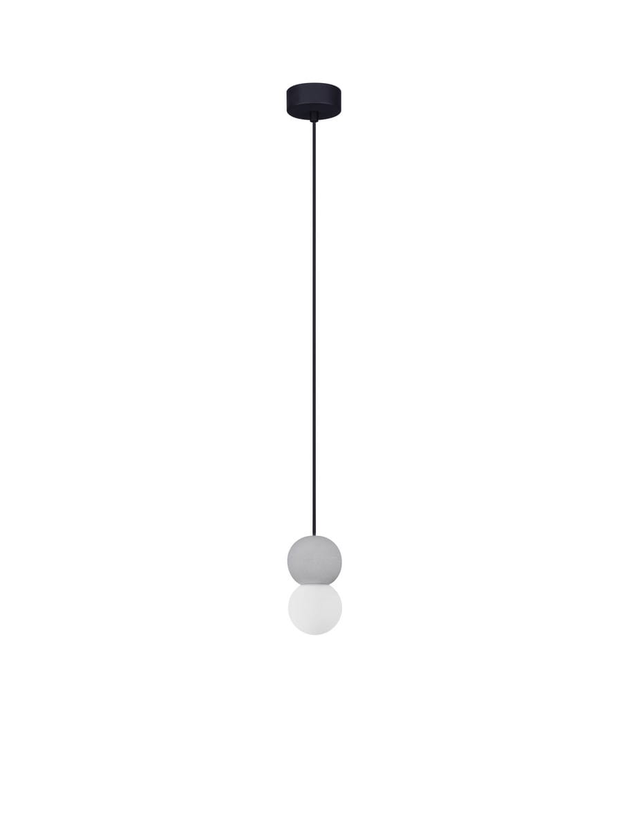 Lampa Ibague składa się z dwóch kul wykonanych z różnych materiałów. Górna wykonana została z surowego gipsu w szarym odcieniu, który nadaje całości industrialnego charakteru. Dolna kula wykonana z matowego szkła w mlecznym kolorze wprowadza element lekkości i elegancji do wnętrza. Ponadto skrywa źródło światła, które jest przeznaczone na standardową żarówkę. Dzięki zastosowaniu matowego szkła, światło jest delikatnie rozproszone, tworząc przyjemną, nieoślepiającą poświatę.