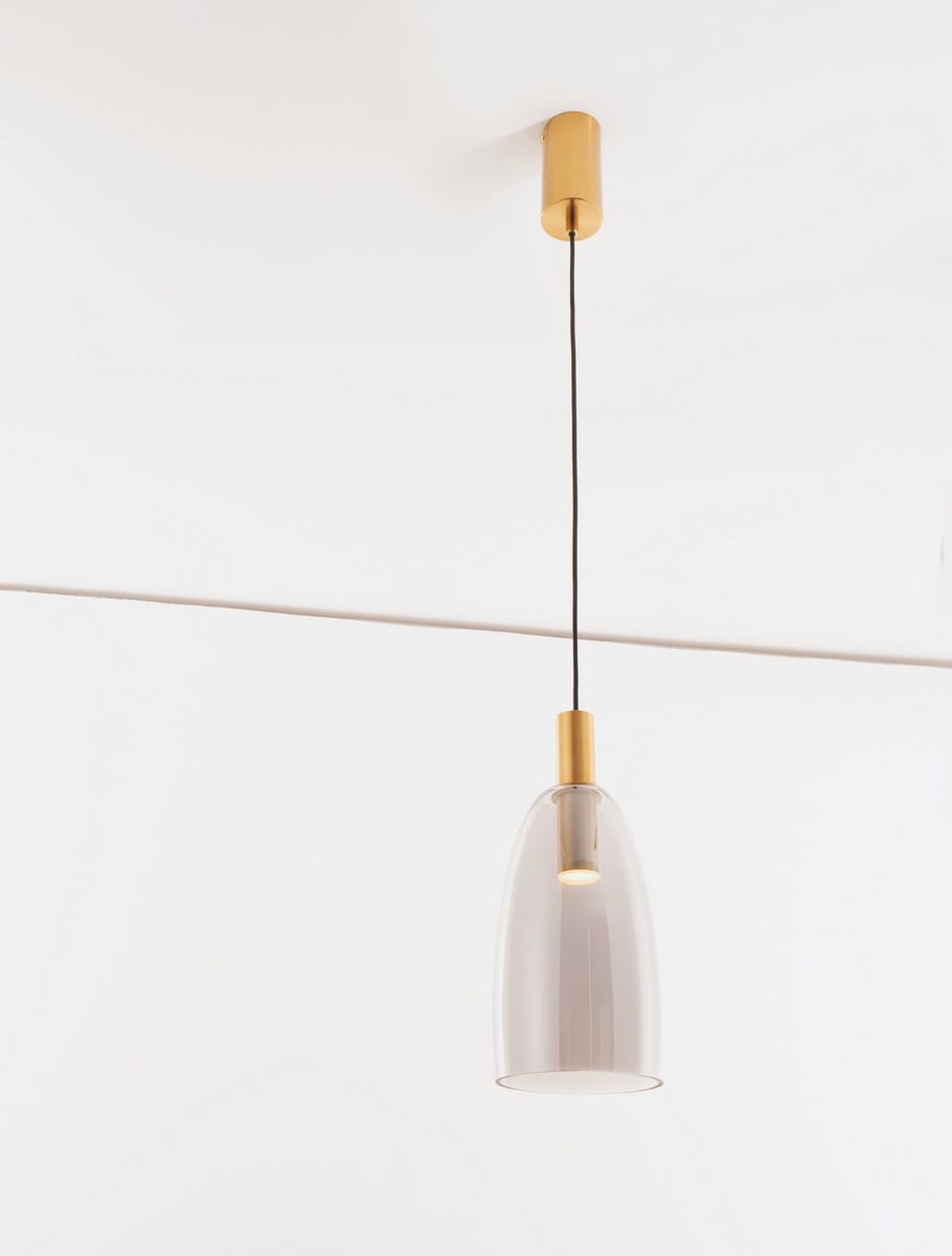 Lampa wisząca Iquitos to esencja minimalistycznego designu, który łączy funkcjonalność z subtelną elegancją. Wykonana z wysokiej jakości szkła i metalu, przyciąga uwagę prostotą formy i perfekcyjnym wykończeniem. Jej szklany klosz o delikatnym, przydymionym odcieniu harmonijnie komponuje się z metalowym elementem w złotym kolorze, nadając lampie lekkości i wyrafinowania.