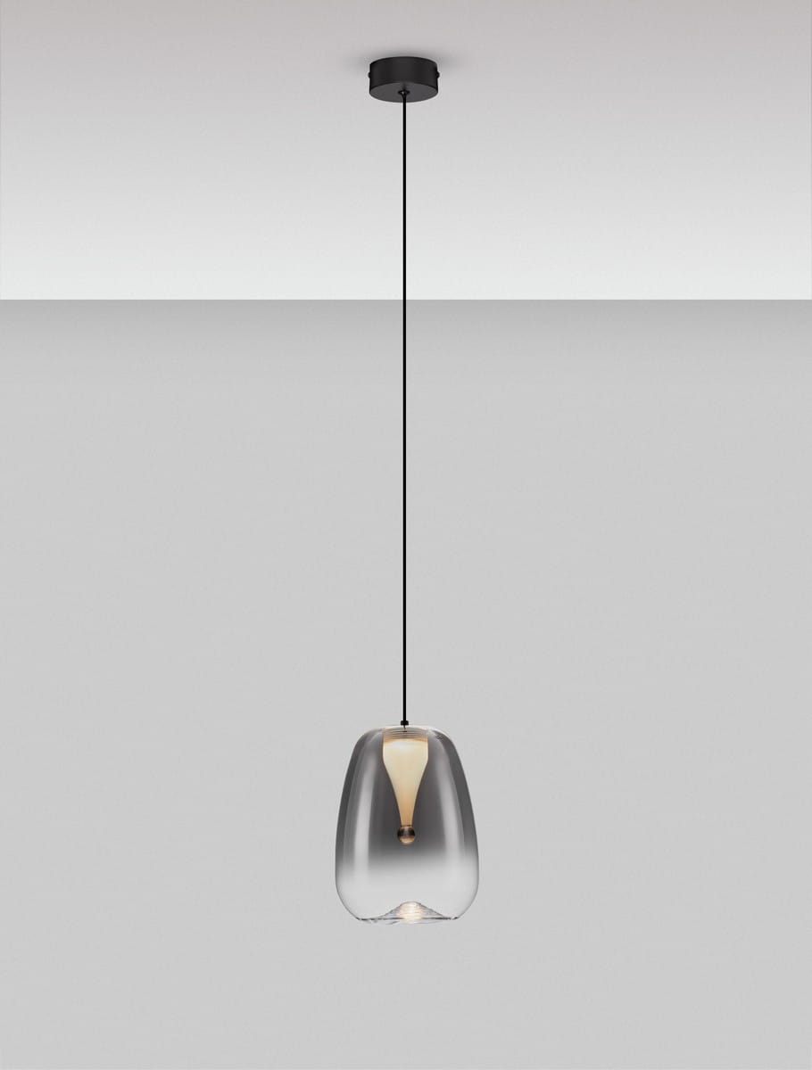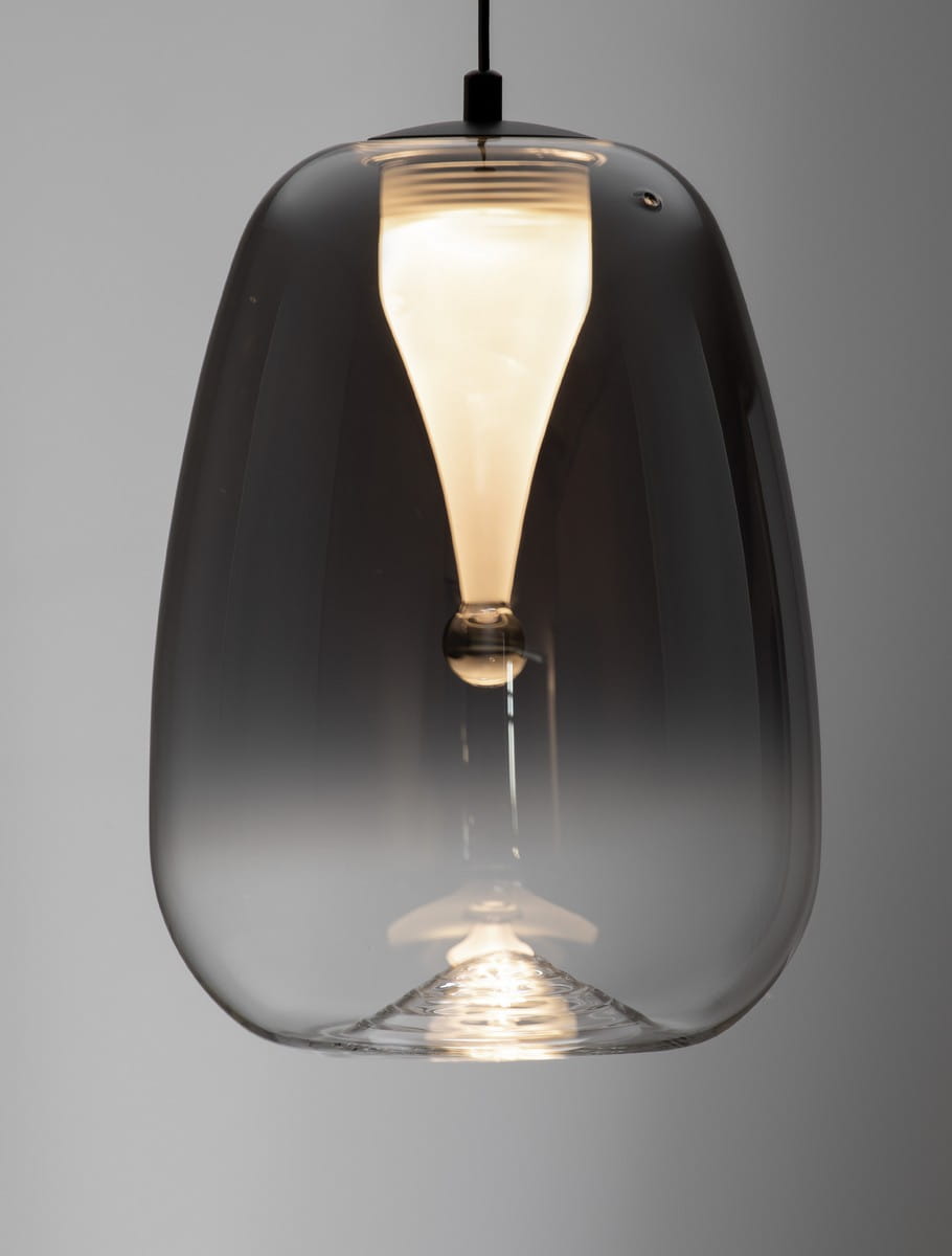 Jarevia to lampa wisząca, która łączy minimalistyczną formę z subtelną grą koloru i światła. Jej organiczny, lekko opływowy klosz wykonany ze szkła dostępny jest w trzech wyjątkowych wersjach kolorystycznych – dymionej, złotej i niebieskiej – co pozwala na idealne dopasowanie do charakteru wnętrza. Każdy wariant oferuje inny klimat świetlny: od stonowanej elegancji, przez ciepły blask, aż po świeżą lekkość.