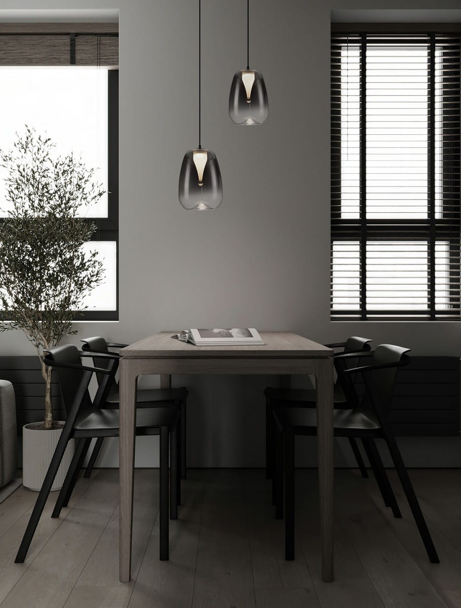 Metalowe detale w czarnym, matowym wykończeniu dopełniają całości, nadając lampie współczesnego charakteru. Jarevia doskonale sprawdzi się jako pojedynczy akcent nad stolikiem kawowym, ale również w kompozycjach kilku lamp nad wyspą kuchenną czy stołem jadalnianym. Jej delikatny wygląd sprawia, że harmonijnie wpisuje się w przestrzenie urządzone w stylu nowoczesnym, skandynawskim czy japandi.