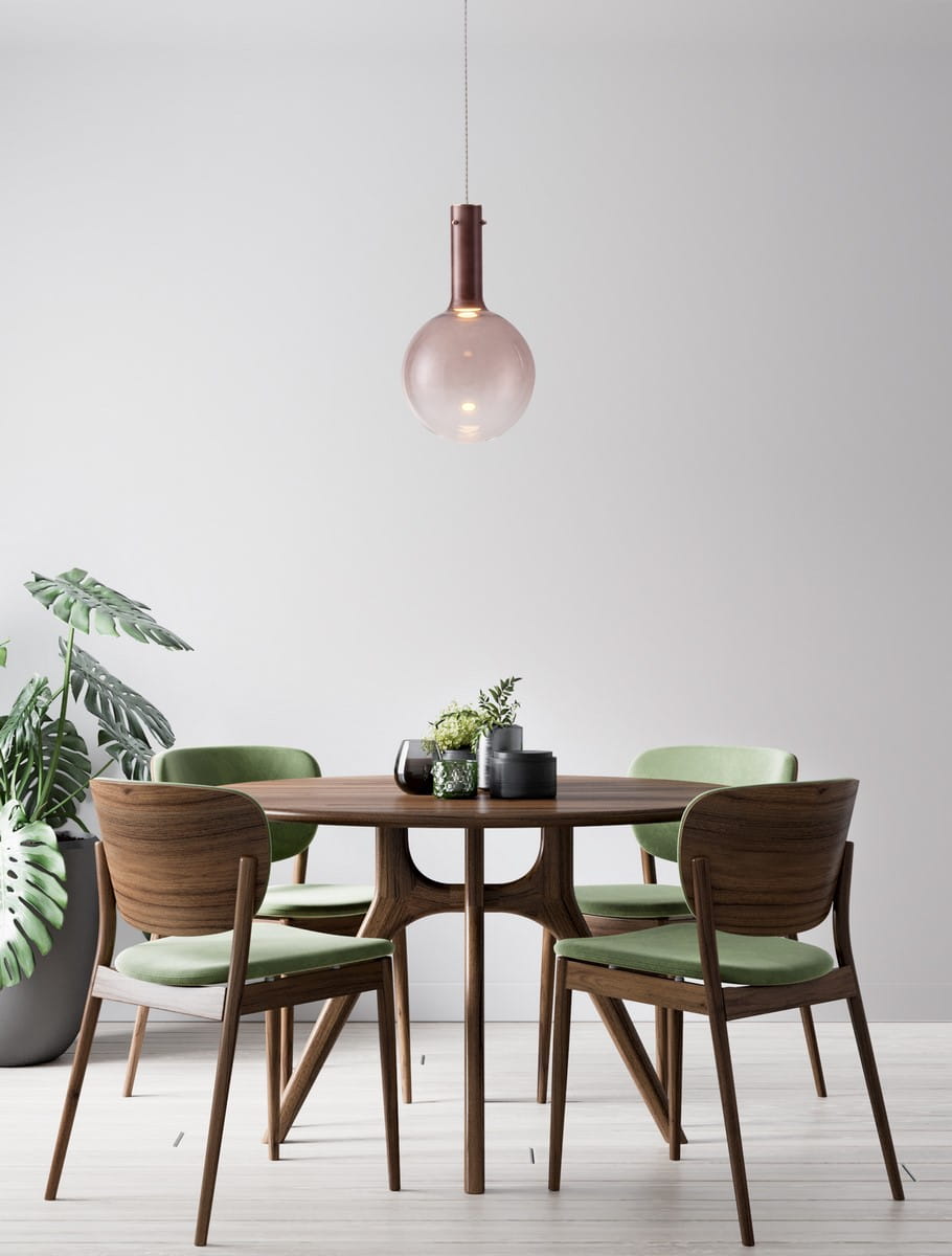 Lampa wisząca Javier to wyjątkowe połączenie minimalistycznego designu i elegancji, wykonana z brązowego szkła i metalu. Jej unikalny klosz w kształcie kuli, subtelnie przechodzący od brązowego koloru do transparentności, tworzy wyjątkowy efekt wizualny, dodając przestrzeni wyrafinowania. Metalowe detale w matowym wykończeniu podkreślają nowoczesny charakter lampy.