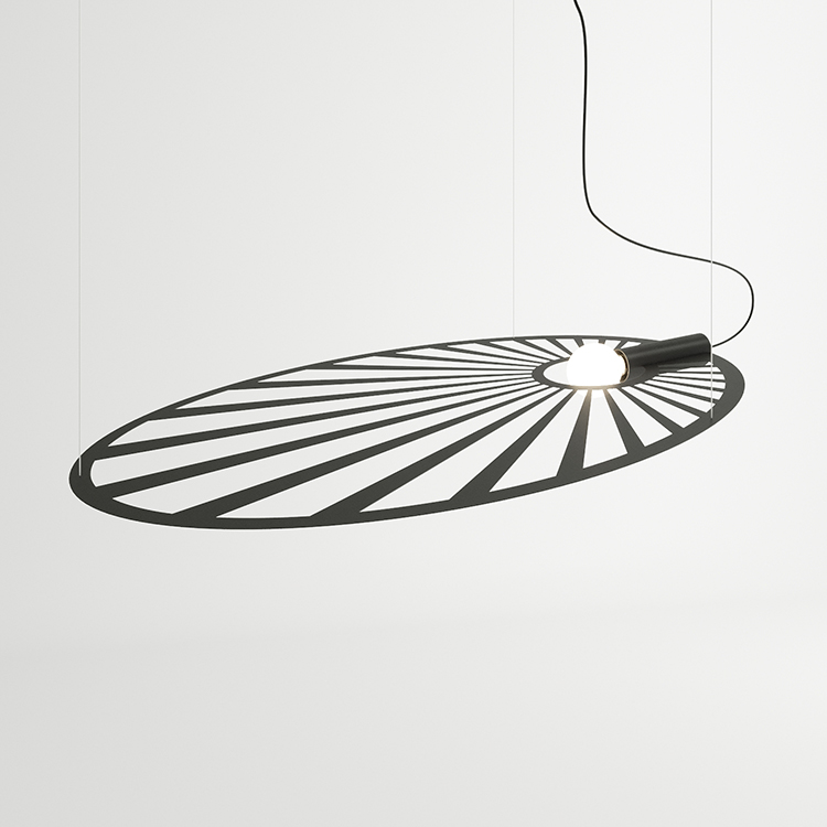 Design lampy Lehdet bazuje na lekkiej, ażurowej konstrukcji ze stali, która przypomina promieniście rozchodzące się liście lub wachlarz inspirowany naturą. Dzięki tej formie lampa nie tylko pełni funkcję praktycznego źródła światła, ale staje się także wyjątkową rzeźbą we wnętrzu, zmieniając jego atmosferę zarówno w dzień, jak i po zmroku.