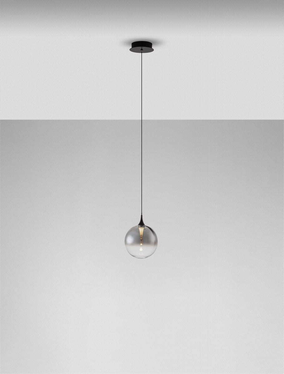 Złote wykończenie wprowadza ciepło i elegancję, podczas gdy wersja dymiona oferuje bardziej stonowany, nowoczesny akcent – obie odsłony równie efektownie prezentują się zarówno w przestrzeniach mieszkalnych, jak i komercyjnych. Dzięki regulowanej wysokości zawieszenia, Lurvela doskonale odnajduje się nad stolikami nocnymi, wyspami kuchennymi czy stołami w jadalni.