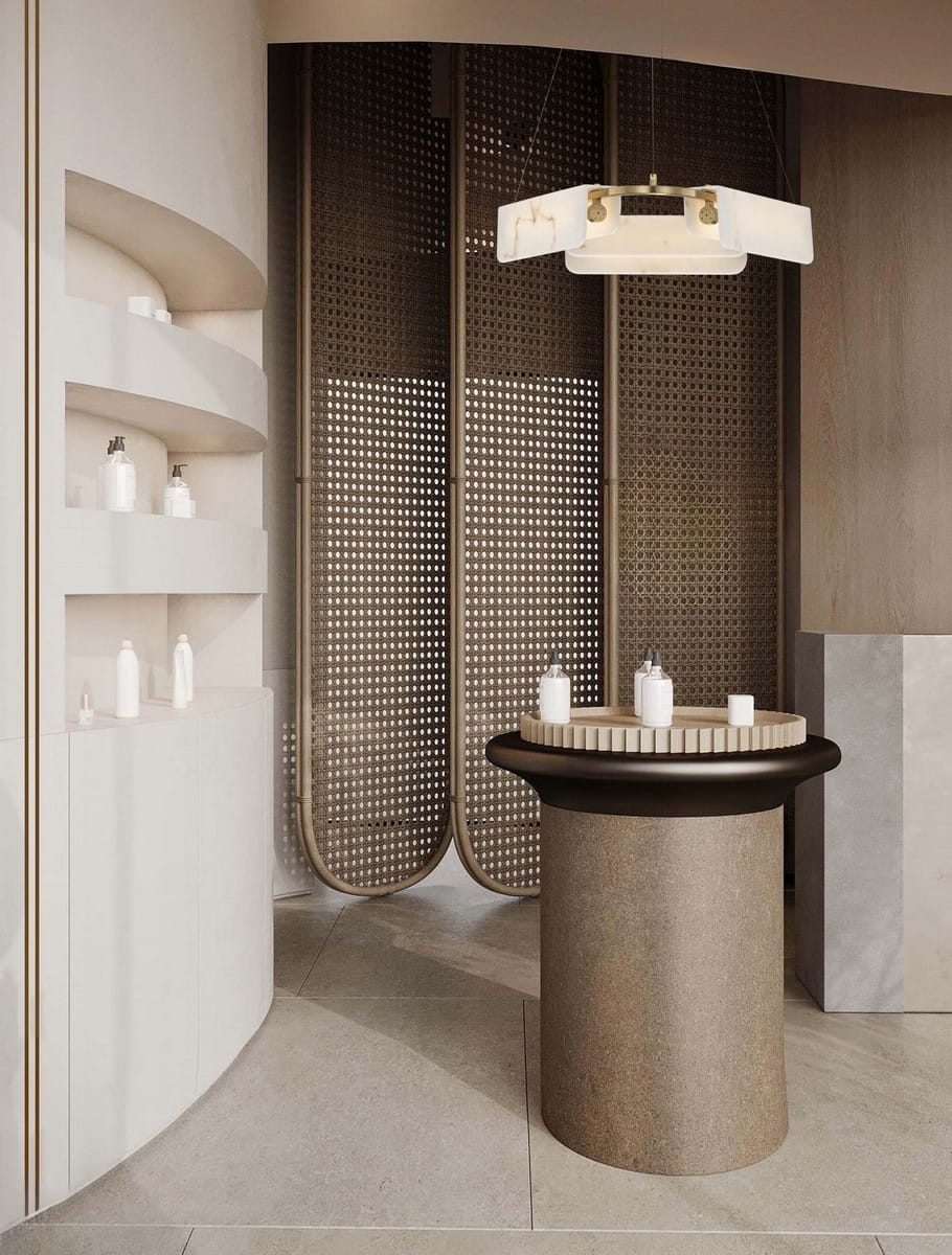 Jej unikalna konstrukcja z marmurowymi panelami, które otaczają delikatne źródło światła, tworzy niezwykły efekt wizualny, doskonale rozpraszając światło i nadając wnętrzu ciepłego blasku. Lampa idealnie sprawdzi się w jadalni, salonie czy sypialni, stając się centralnym punktem każdej przestrzeni.