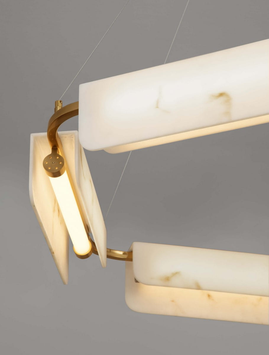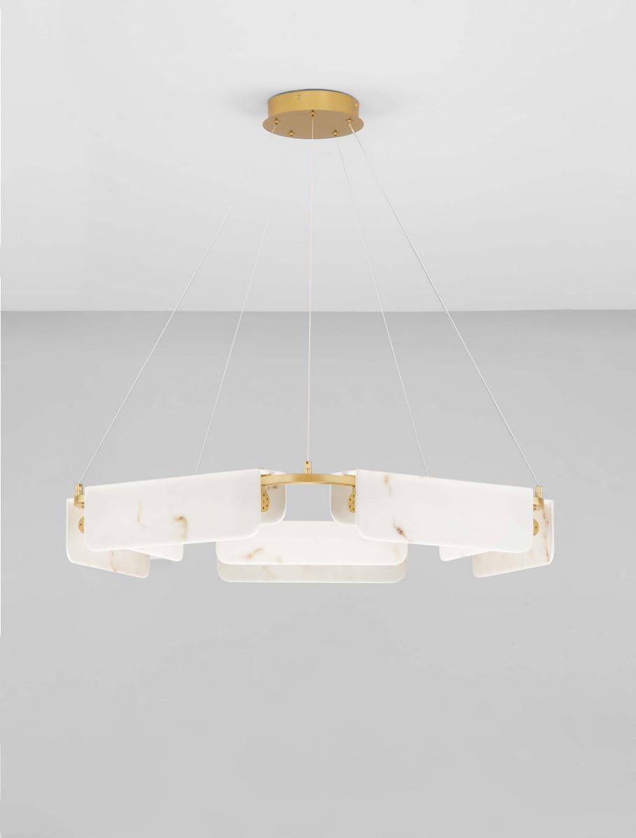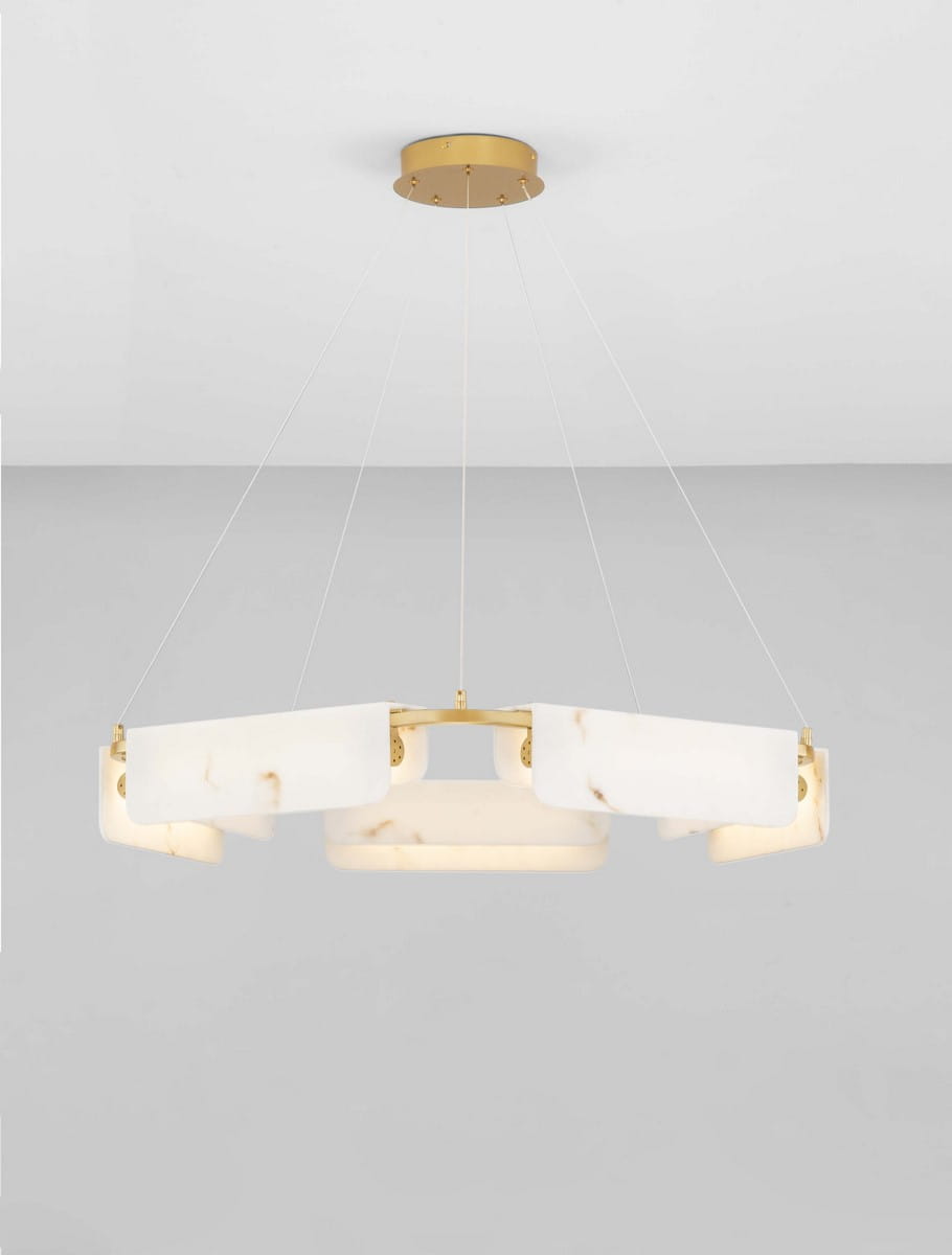 Jej unikalna konstrukcja z marmurowymi panelami, które otaczają delikatne źródło światła, tworzy niezwykły efekt wizualny, doskonale rozpraszając światło i nadając wnętrzu ciepłego blasku. Lampa idealnie sprawdzi się w jadalni, salonie czy sypialni, stając się centralnym punktem każdej przestrzeni.