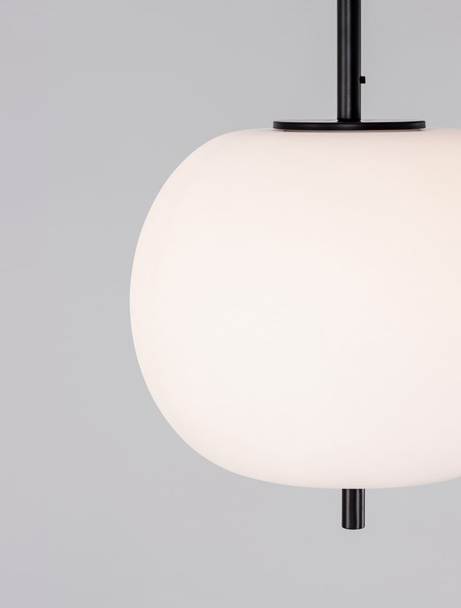 Lampa posiada okrągły klosz wykonany z wysokiej jakości szkła w białym kolorze, które przyjemnie rozprasza światło. Lampa dostępna jest również w mniejszym rozmiarze i z różnymi kształtami kloszy – kulistym oraz eliptycznym. Jeśli szukasz większego oświetlenia z potrójnym źródłem światła, model Marc Triple będzie idealnym wyborem, który spełni Twoje oczekiwania.