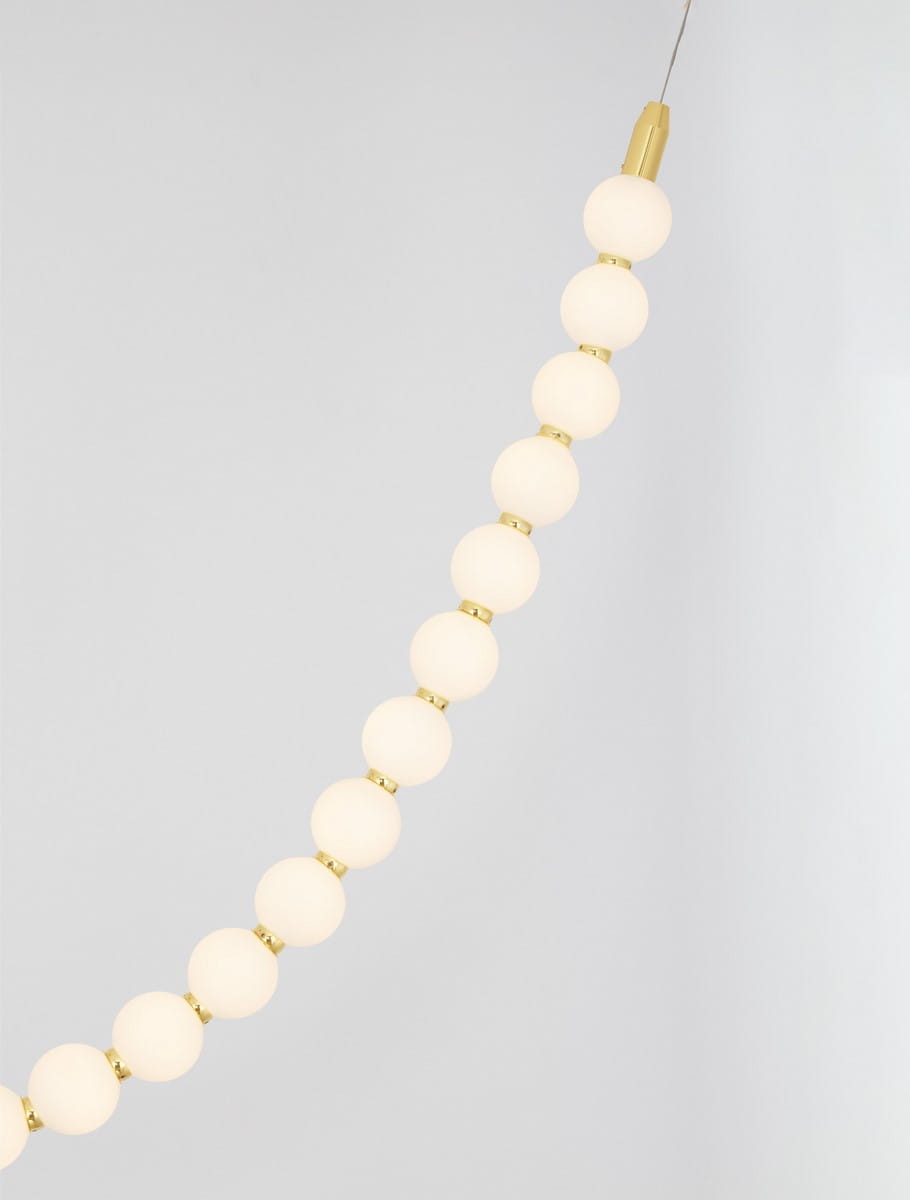 Lampa Moca to kwintesencja luksusu i elegancji, inspirowana subtelnym pięknem pereł. Jej wyjątkowy design, przypominający swobodnie opadający sznur z nawleczonymi "perełkami", to prawdziwe dzieło sztuki, które doskonale wkomponuje się we wnętrza nowoczesne, minimalistyczne, a także glamour. Wykonana z najwyższej jakości szkła i metalu, lampa ta nie tylko rozświetli przestrzeń, ale stanie się także najbardziej zachwycającym elementem dekoracyjnym Twojego wnętrza.
