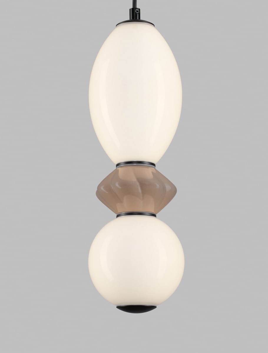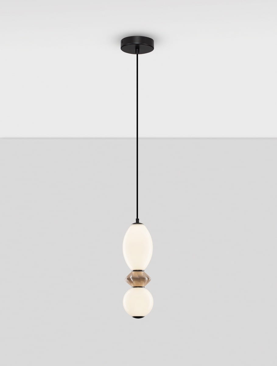 Kolekcja lamp wiszących Monreta to wyjątkowe połączenie sztuki użytkowej z nowoczesnym oświetleniem. Każdy model to przemyślana kompozycja kształtów inspirowana geometrią, w której matowe i błyszczące powierzchnie tworzą wyrafinowany kontrast. Szklane klosze w opalowym wykończeniu harmonijnie łączą się z dekoracyjnymi, ręcznie wykończonymi elementami ceramicznymi – subtelnymi, ale wyrazistymi akcentami, które definiują charakter lampy.