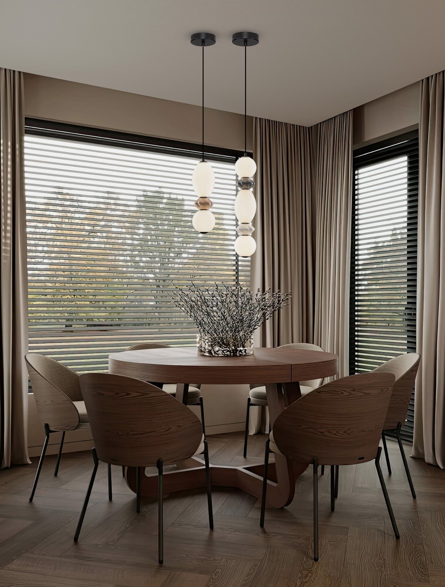 Dostępne w różnych układach i długościach, lampy Monreta oferują elastyczność aranżacyjną — doskonale prezentują się pojedynczo nad stolikiem nocnym, jak i w grupie nad wyspą kuchenną czy stołem. Możliwość ściemniania za pomocą systemu TRIAC pozwala dostosować natężenie światła do nastroju i funkcji pomieszczenia.
