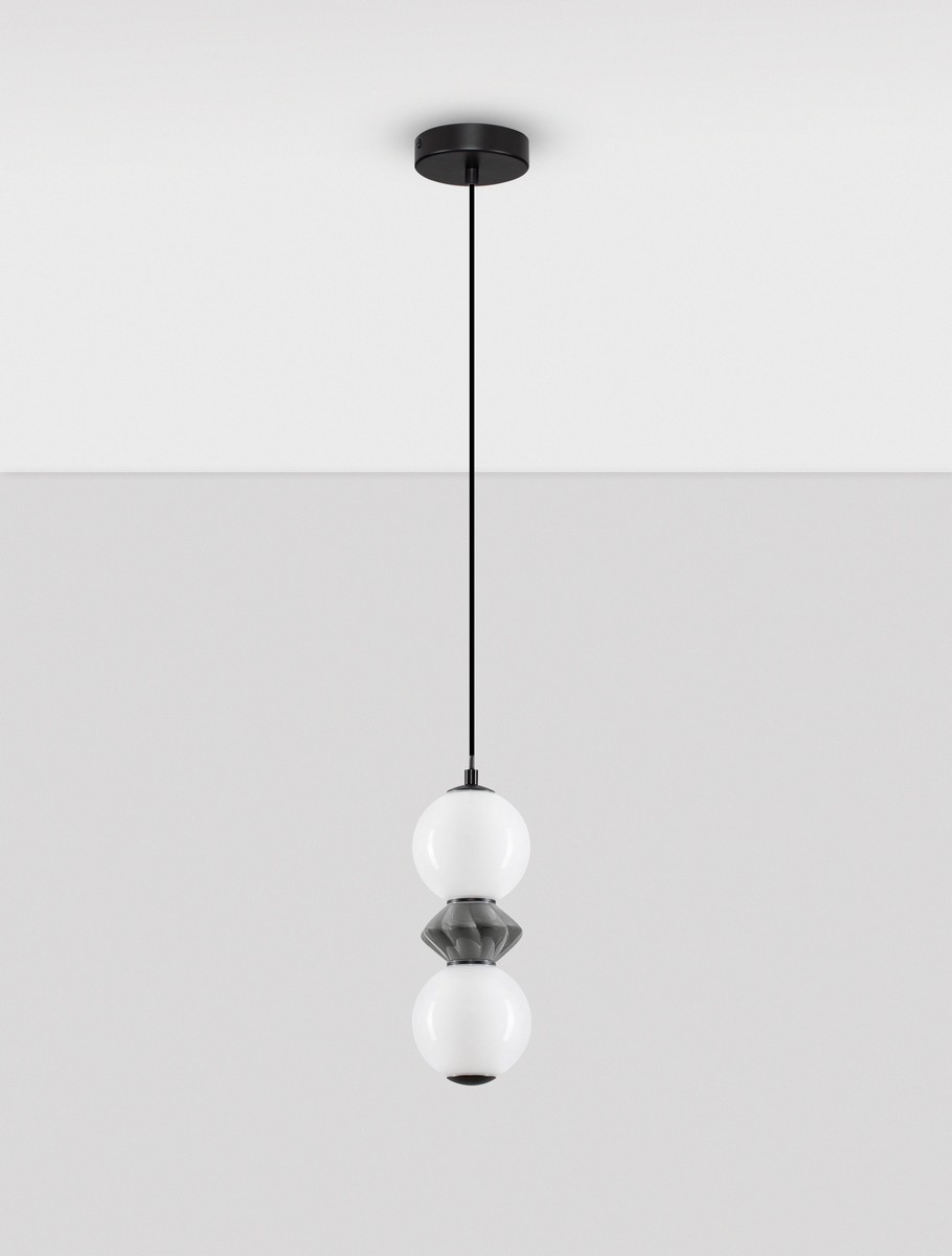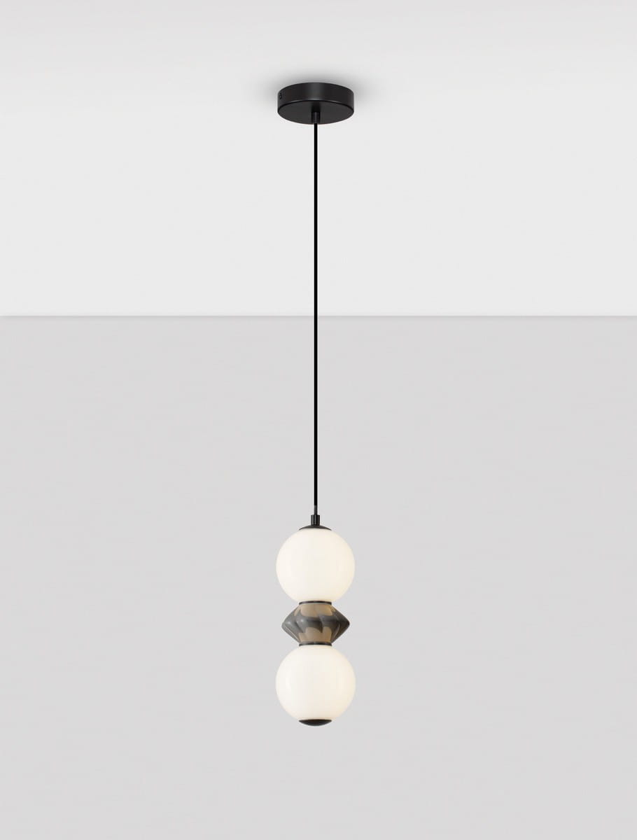 Kolekcja lamp wiszących Monreta to wyjątkowe połączenie sztuki użytkowej z nowoczesnym oświetleniem. Każdy model to przemyślana kompozycja kształtów inspirowana geometrią, w której matowe i błyszczące powierzchnie tworzą wyrafinowany kontrast. Szklane klosze w opalowym wykończeniu harmonijnie łączą się z dekoracyjnymi, ręcznie wykończonymi elementami ceramicznymi – subtelnymi, ale wyrazistymi akcentami, które definiują charakter lampy.