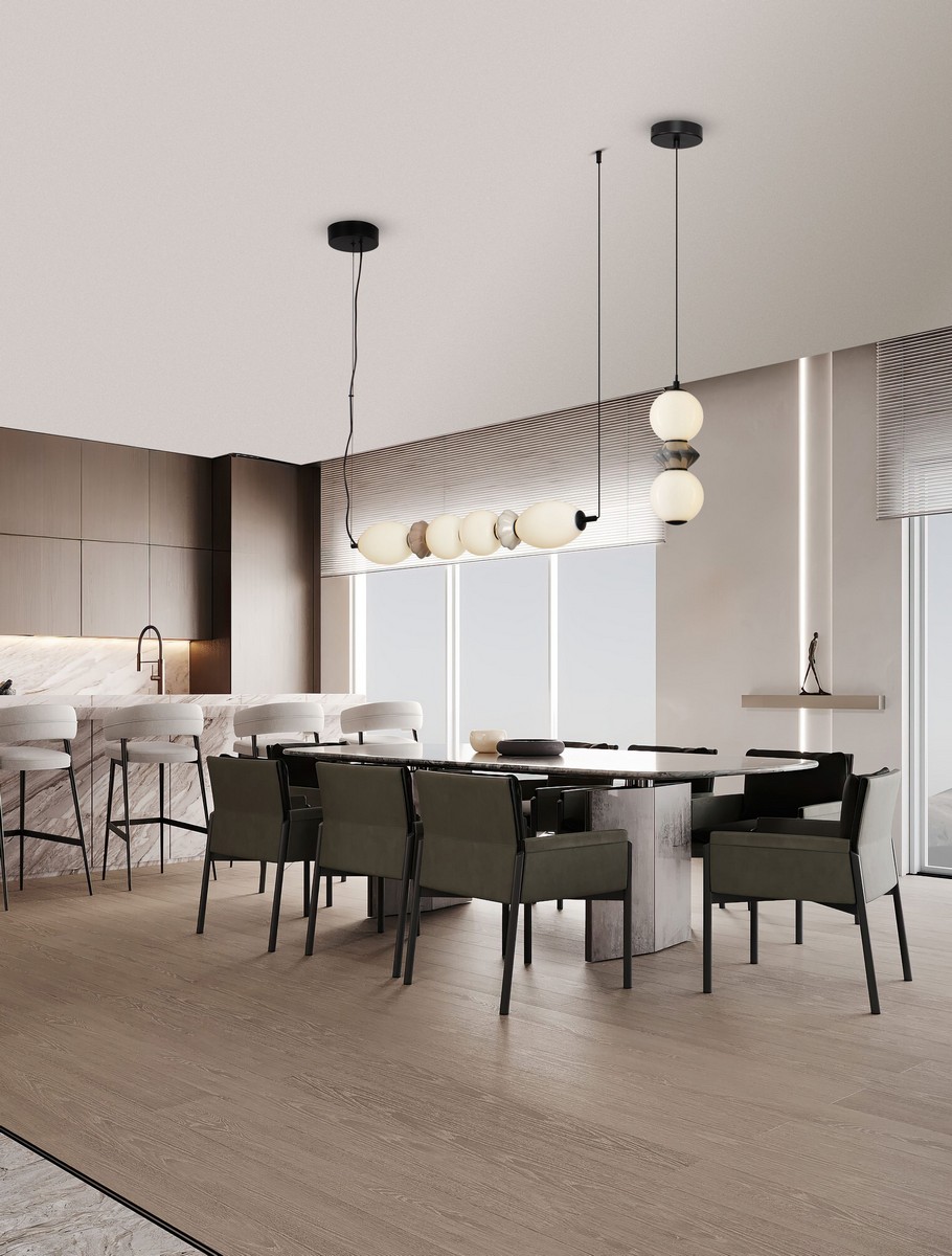 Dostępne w różnych układach i długościach, lampy Monreta oferują elastyczność aranżacyjną — doskonale prezentują się pojedynczo nad stolikiem nocnym, jak i w grupie nad wyspą kuchenną czy stołem. Możliwość ściemniania za pomocą systemu TRIAC pozwala dostosować natężenie światła do nastroju i funkcji pomieszczenia.