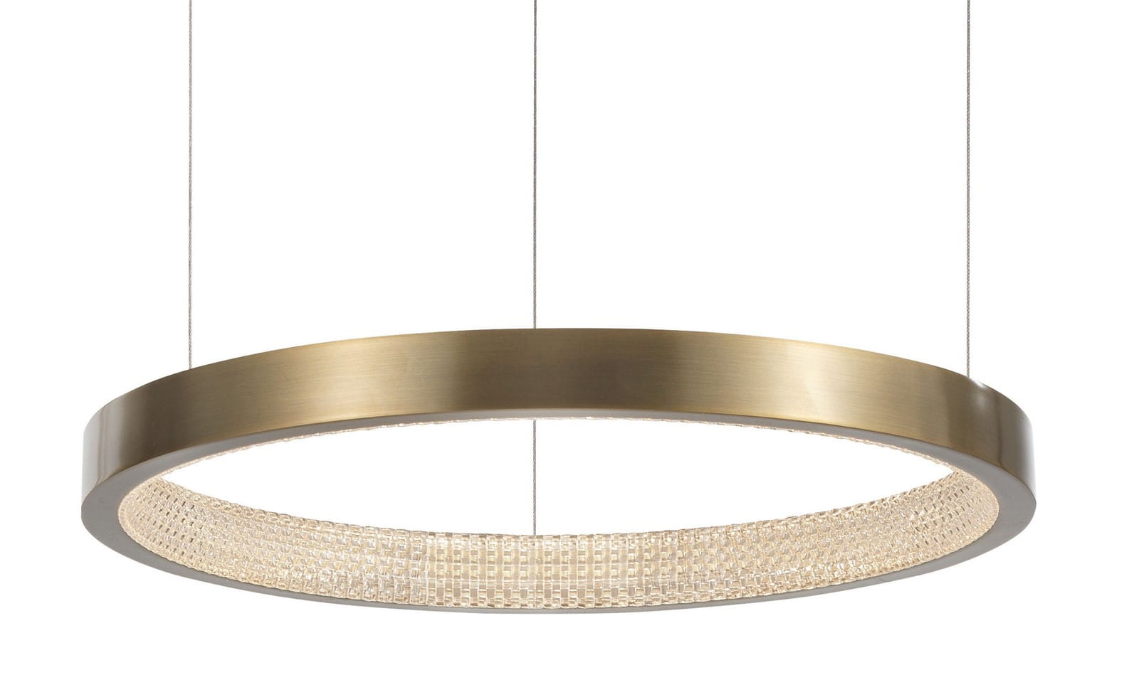 Klosz zawieszony został na cienkich linkach z możliwością regulacji, dając efekt świetlistego okręgu dryfującego w powietrzu.