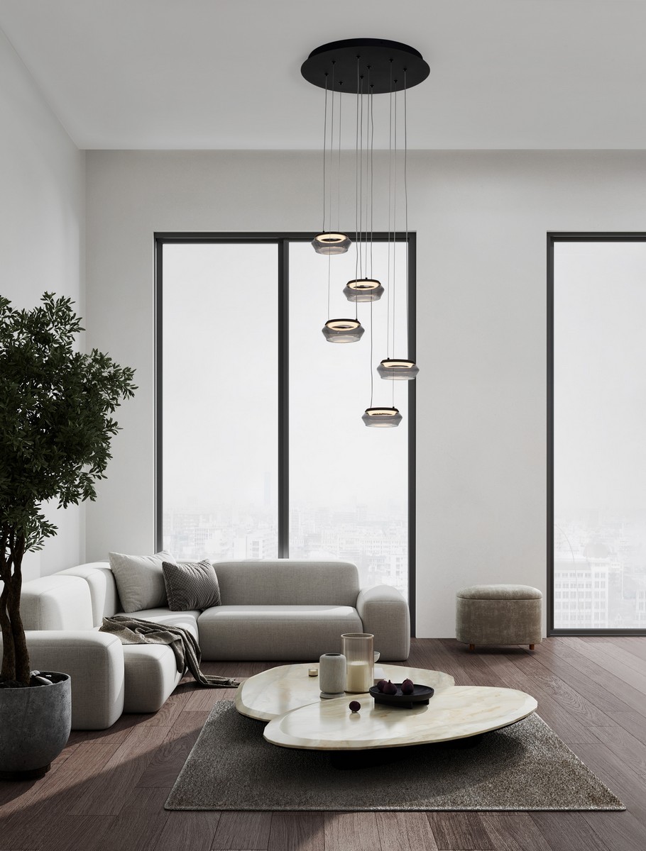 Ovanira Disc-5 doskonale sprawdzi się jako centralny punkt w salonie, nad stołem w jadalni czy w przestrzeniach komercyjnych, gdzie liczy się nowoczesny design i funkcjonalność w jednym.