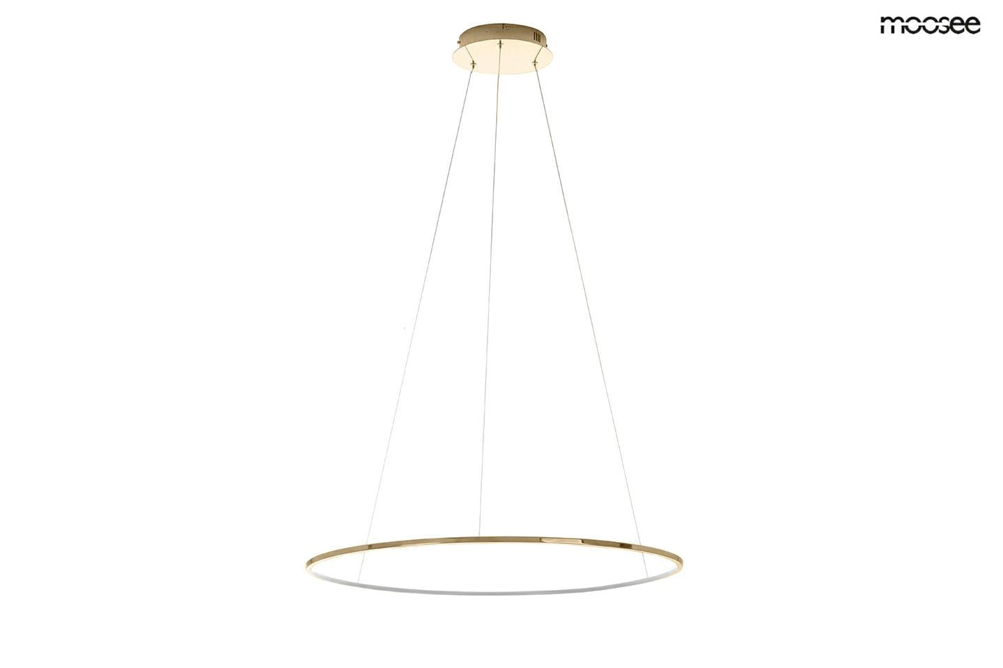 Lampa wisząca Ring Slim to elegancka i nowoczesna oprawa, łącząca w sobie ponadczasowy minimalizm z wyjątkowym designem. Forma o okrągłej konstrukcji wykonana została ze stali w błyszczącym złotym kolorze i posiada wbudowane źródło światła LED.