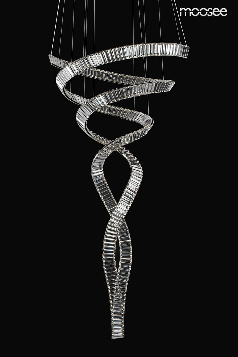 Lampa składa się z dwóch, długich rzędów transparentnych kryształów, które zostały ze sobą splecione tworząc mieniącą się spiralę. Całość utrzymują delikatne, transparentne linki, przez co lampa wygląda niczym dzieło sztuki zawieszone w powietrzu.