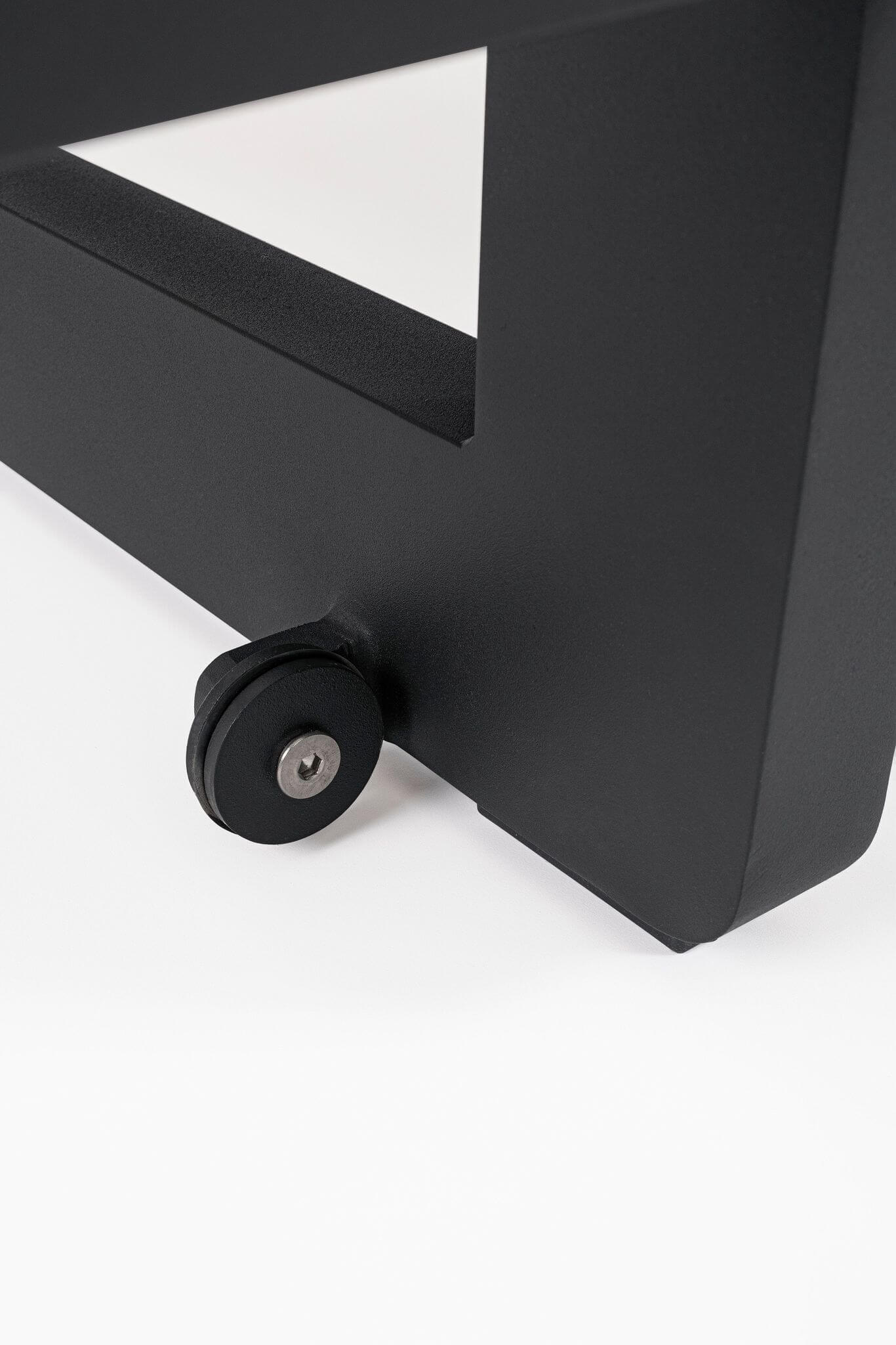 Dodatkowo, czarny leżak wyposażony jest w aluminiowe koła pokryte gumą, które ułatwiają jego przestawienie.