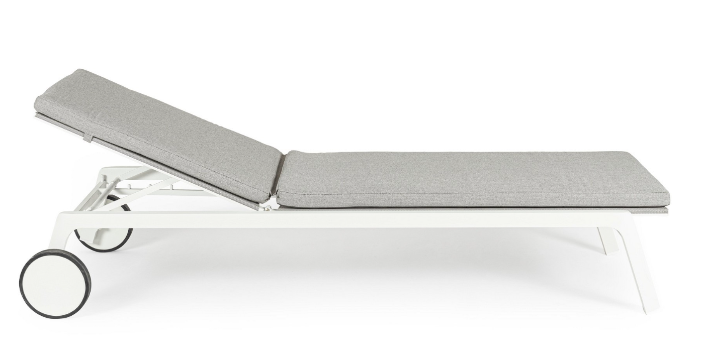 Leżak ogrodowy Jalisco w subtelnym, jasnoszarym wydaniu z ekskluzywnej kolekcji Bizzotto Homemotion to synonim luksusowego wypoczynku na tarasie. Konstrukcja została w całości wykonana z aluminium malowanego proszkowo w neutralnym, jasnym odcieniu. Zastosowanie tego materiału gwarantuje nie tylko nowoczesną i minimalistyczną formę, ale również optymalną lekkość i całkowitą odporność bryły na korozję.