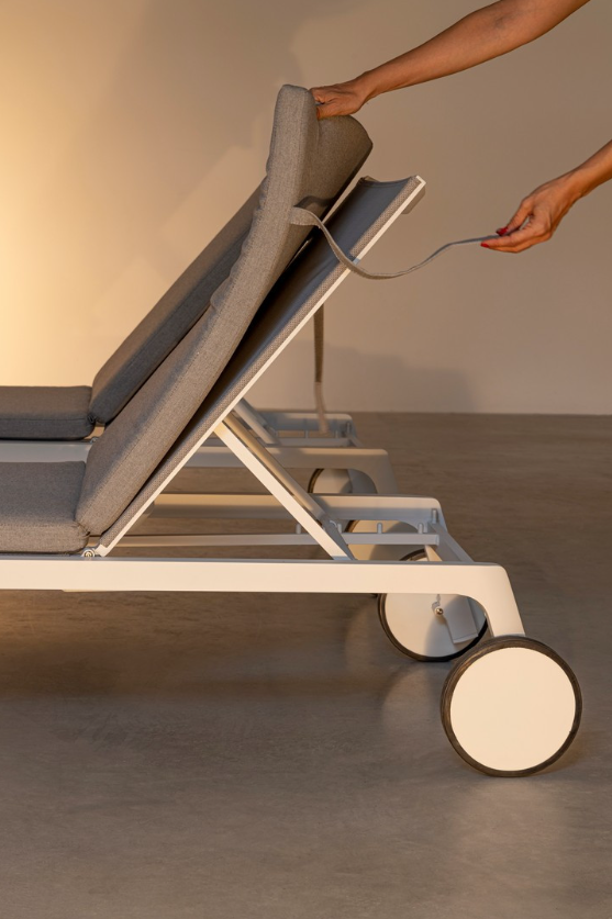 Model Jalisco stawia na bezkompromisową wygodę. Oparcie posiada intuicyjny mechanizm regulacji nachylenia w 4 pozycjach, pozwalający na płynne przejście od lektury książki do całkowicie płaskiej pozycji ułatwiającej opalanie. Dodatkowo leżak wyposażono w duże, aluminiowe kółka wykończone warstwą gumy. Umożliwiają one ciche i bezpieczne dla posadzki przemieszczanie mebla w poszukiwaniu idealnego nasłonecznienia.