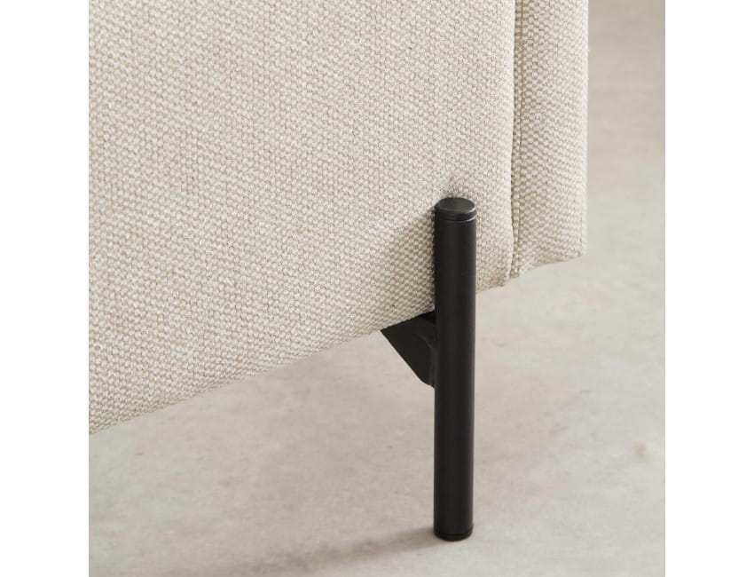 Czarne nóżki wykonane z metalu unoszą bryłę mebla nad ziemią, dodając jej lekkości i gracji. Kolor nóżek oraz pasów zagłówka stylowo ze sobą współgra, wzajemnie się uzupełniając.