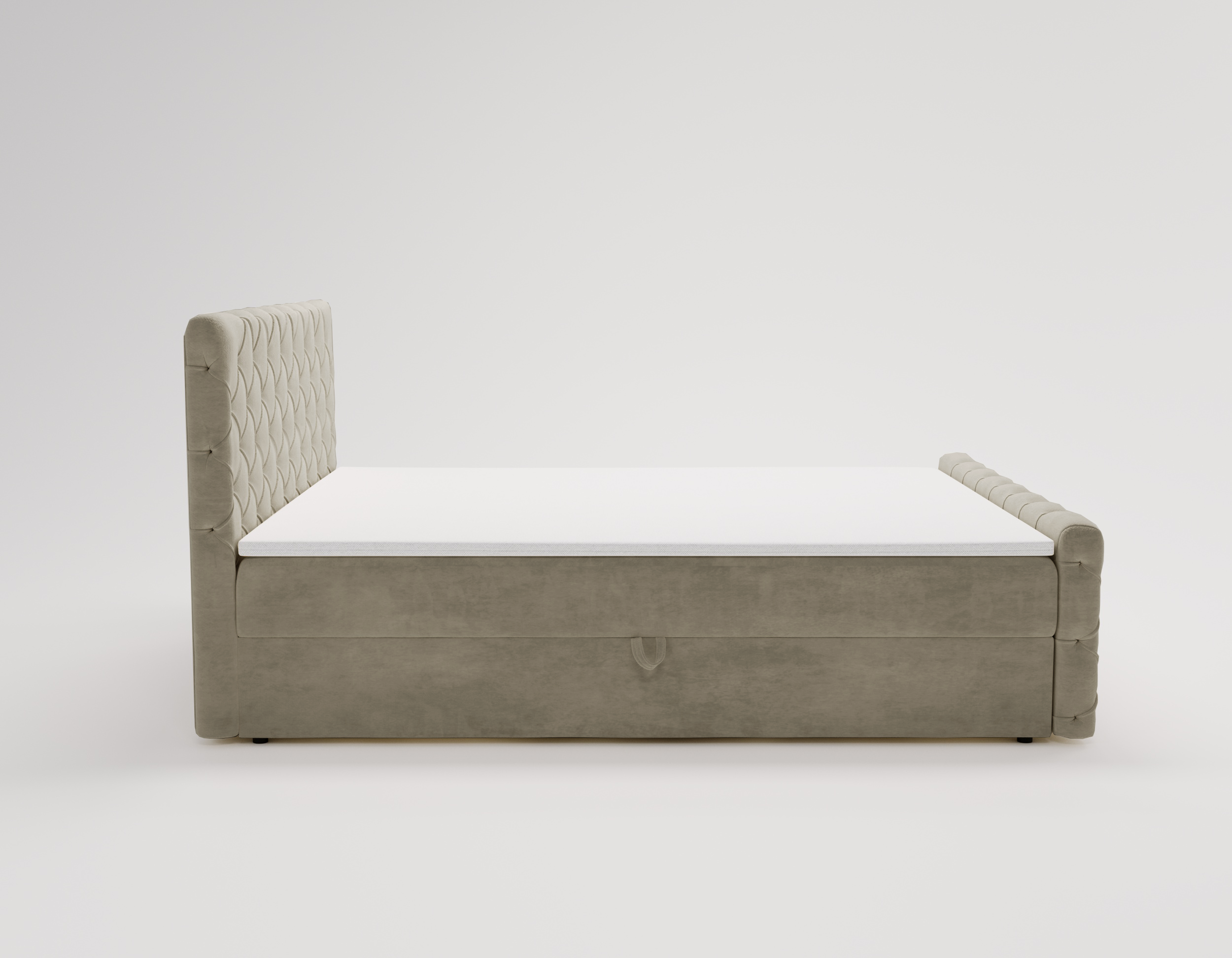 Wezgłowie zachwyca pięknym, głębokim pikowaniem typu chesterfield, które nadaje łóżku wyjątkowy urok i elegancję. Miękkie, ręcznie wykończone przeszycia tworzą efektowny wzór w romby, podkreślając szlachetny charakter tkaniny obiciowej. Całość uzupełnia spójna bryła łóżka – tapicerowany korpus oraz front łóżka również zdobione pikowaniem, dzięki czemu Classic prezentuje się harmonijnie i dopracowanie z każdej strony.