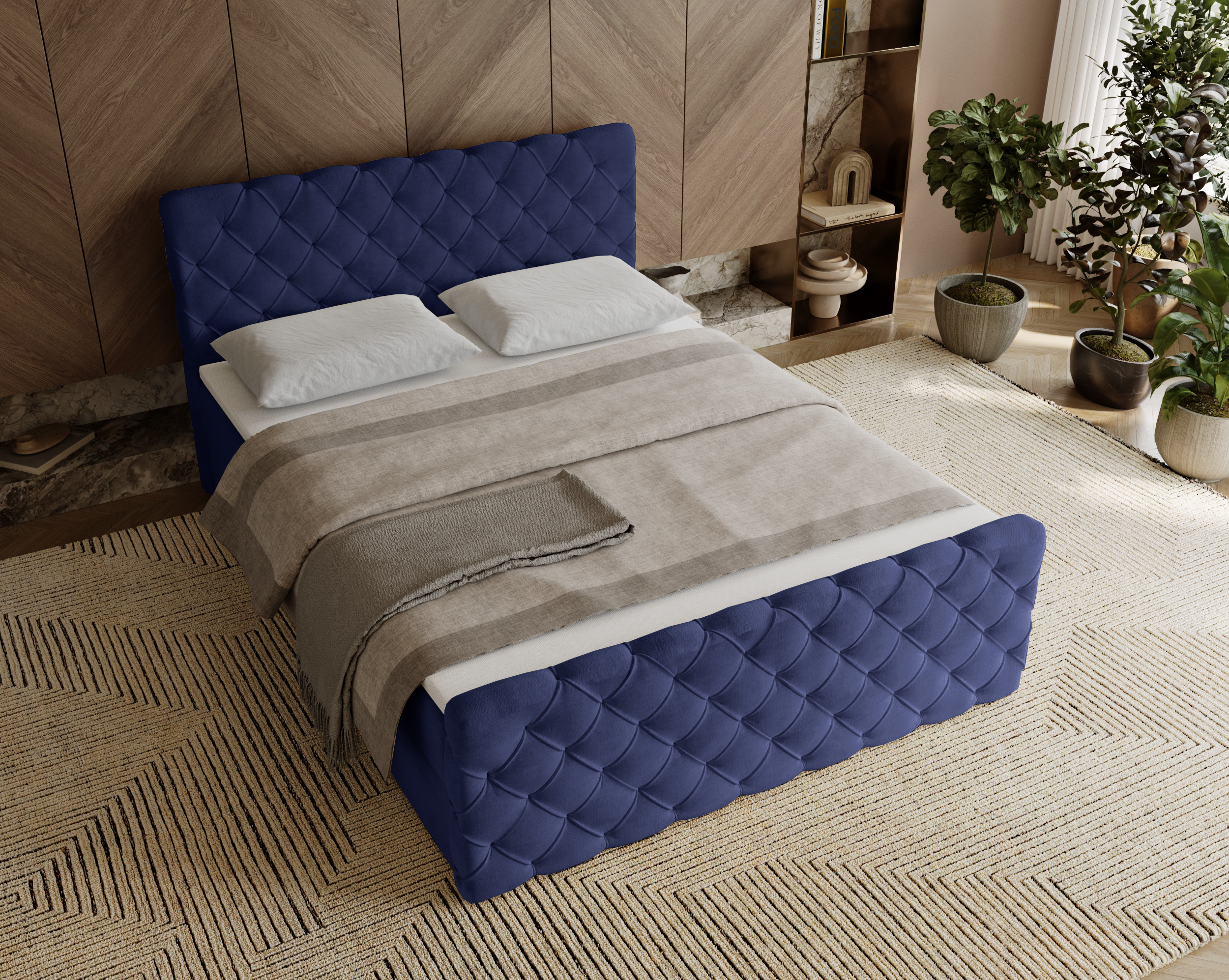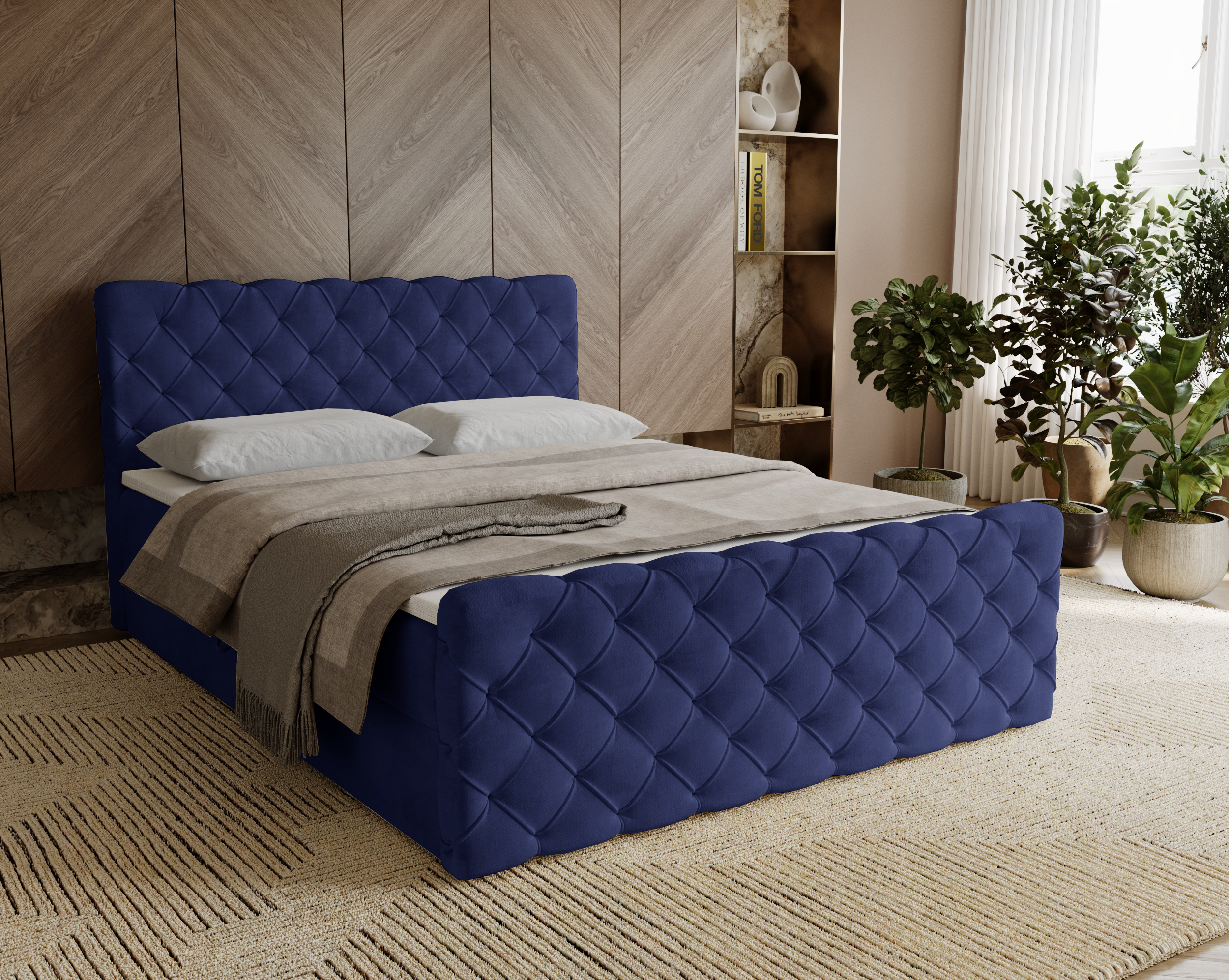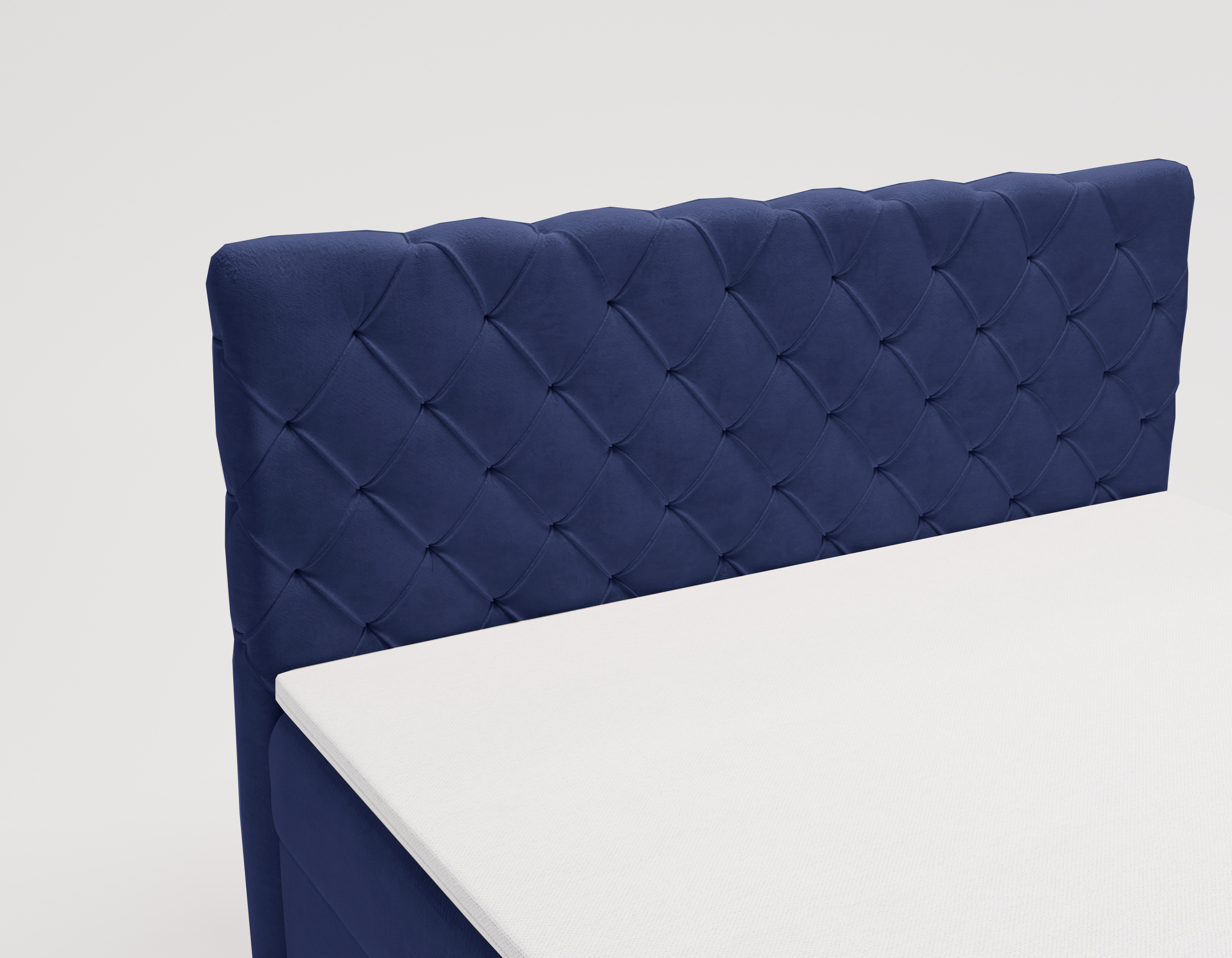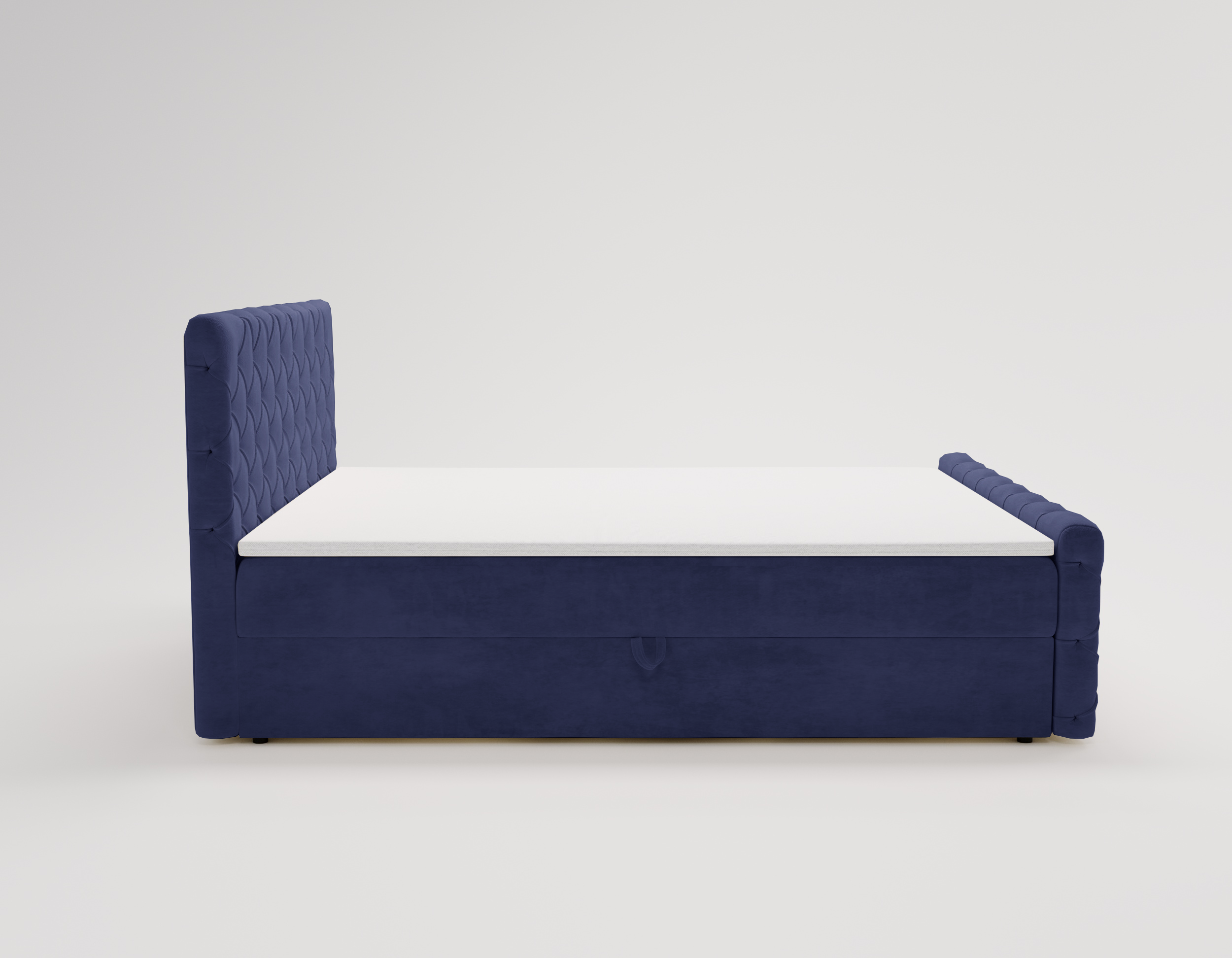 Wezgłowie zachwyca pięknym, głębokim pikowaniem typu chesterfield, które nadaje łóżku wyjątkowy urok i elegancję. Miękkie, ręcznie wykończone przeszycia tworzą efektowny wzór w romby, podkreślając szlachetny charakter tkaniny obiciowej. Całość uzupełnia spójna bryła łóżka – tapicerowany korpus oraz front łóżka również zdobione pikowaniem, dzięki czemu Classic prezentuje się harmonijnie i dopracowanie z każdej strony.