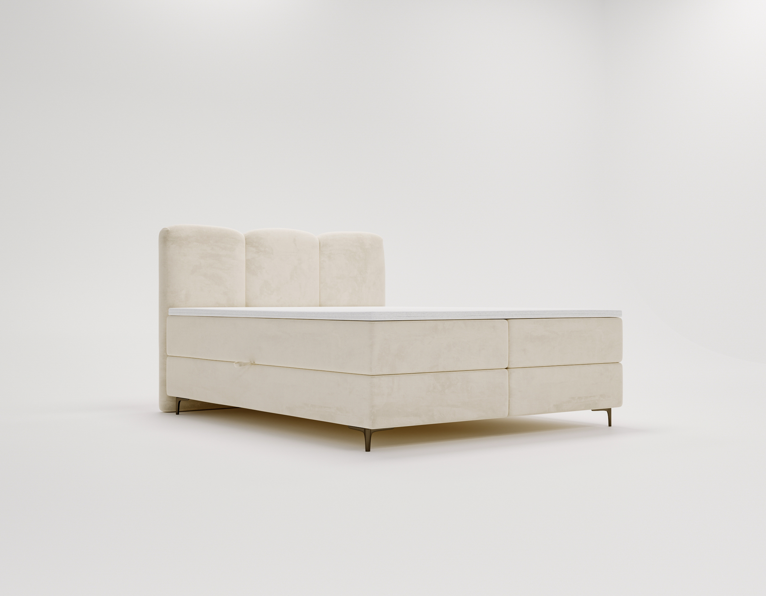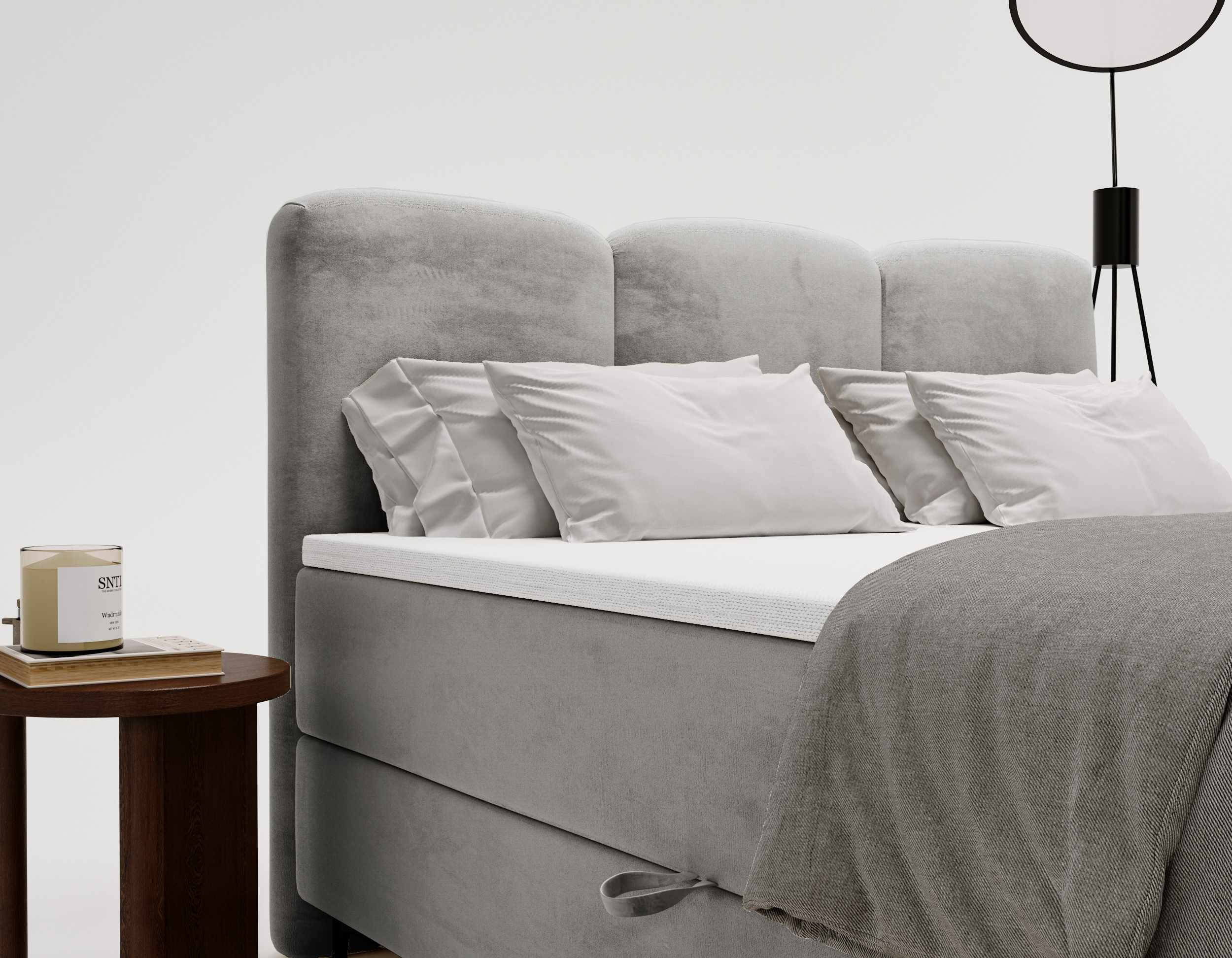 Łóżko kontynentalne Roll to elegancka propozycja dla osób, które cenią nowoczesny design, komfort i praktyczne rozwiązania. Wyróżnia się charakterystycznym, zaokrąglonym zagłówkiem z trzema miękkimi panelami, które tworzą przytulną, harmonijną formę. Subtelna linia i proporcje sprawiają, że Roll świetnie wpisuje się w wystrój każdej sypialni – od minimalistycznych po klasyczne aranżacje.
