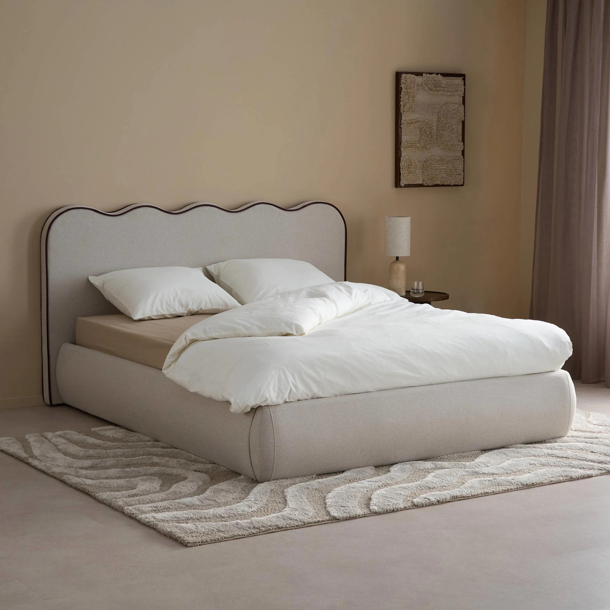 Łóżko tapicerowane Solea z falowanym zagłówkiem i lamówką