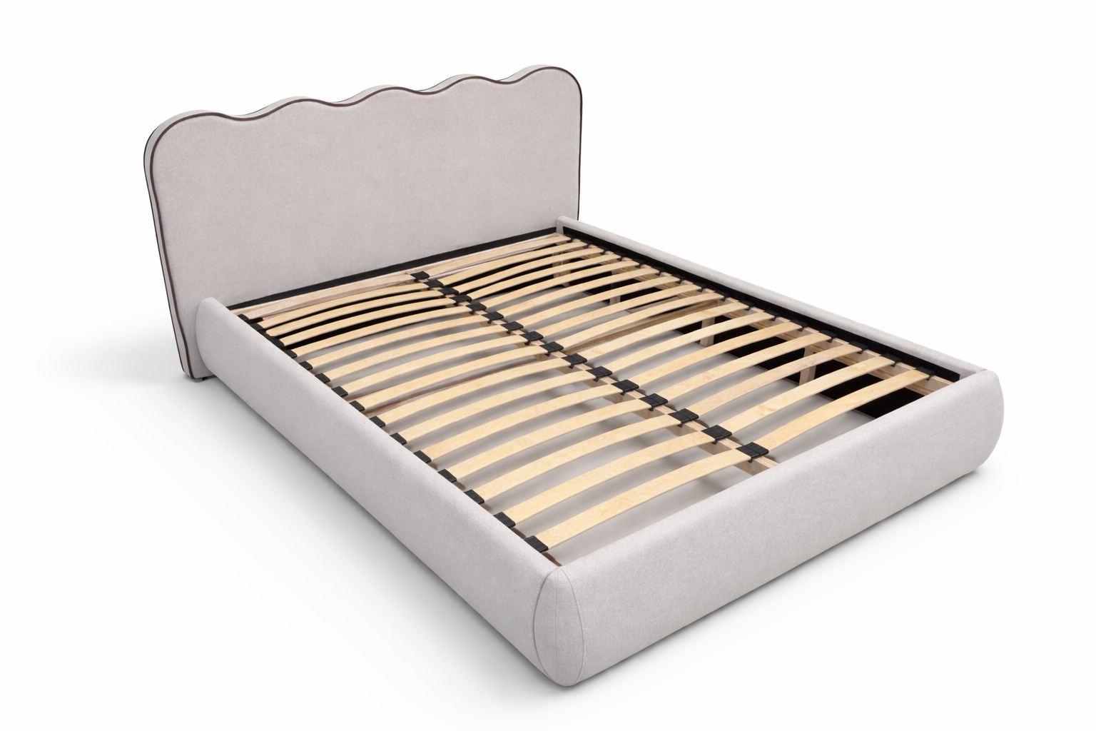Tapicerowana, delikatnie zaokrąglona rama nadaje łóżku przytulny, ekskluzywny wygląd, a starannie dopracowane proporcje podkreślają jego lekkość i styl. To propozycja dla osób, które szukają mebla efektownego wizualnie, a jednocześnie uniwersalnego i komfortowego w codziennym użytkowaniu.