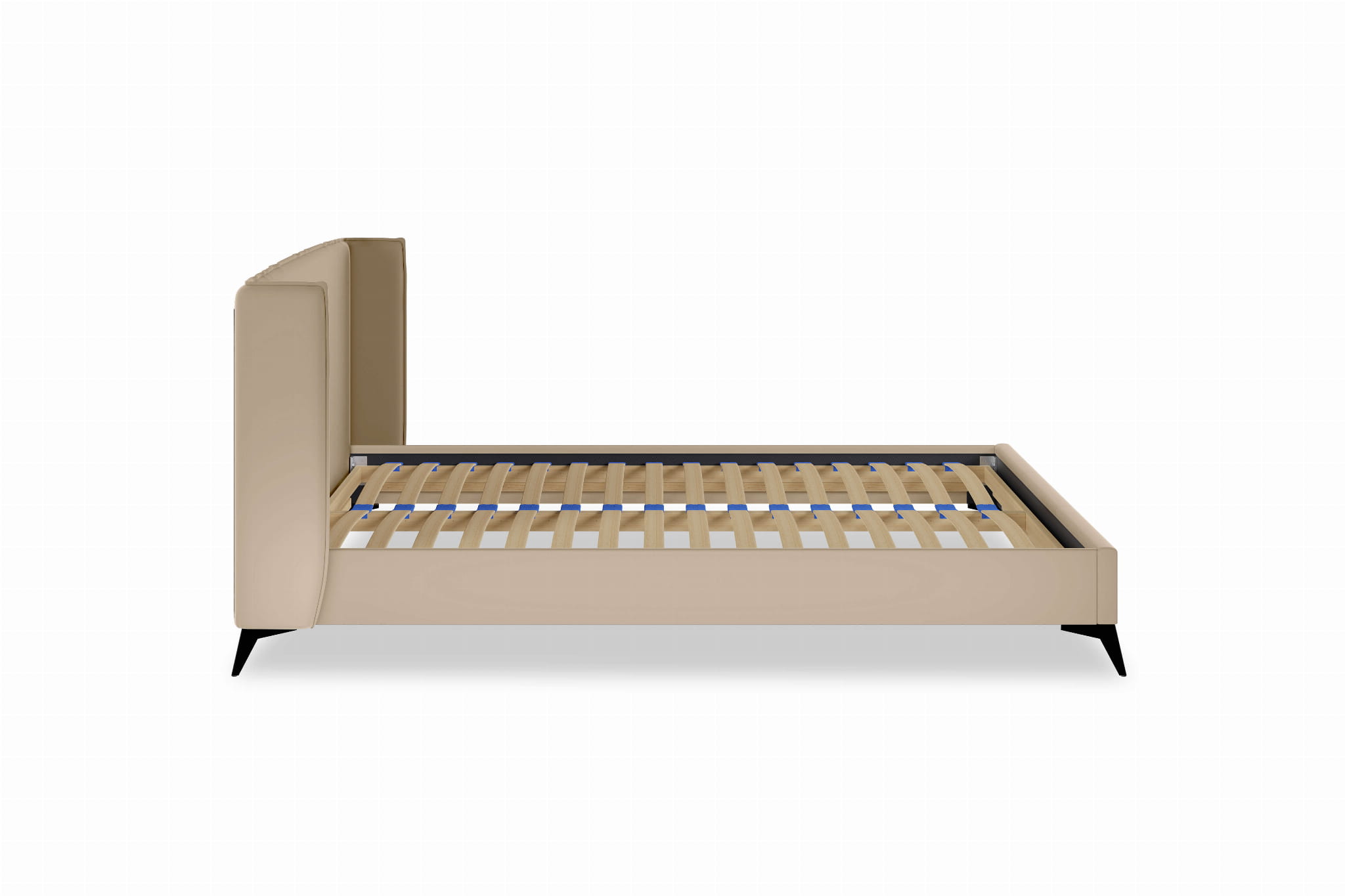 Łóżko dostarczane jest w 3 odrębnych bryłach – dwie połowy łóżka oraz zagłówek. Dodatkowo wraz z łóżkiem dostarczany jest topper – lekki materac zwieńczający łóżko.