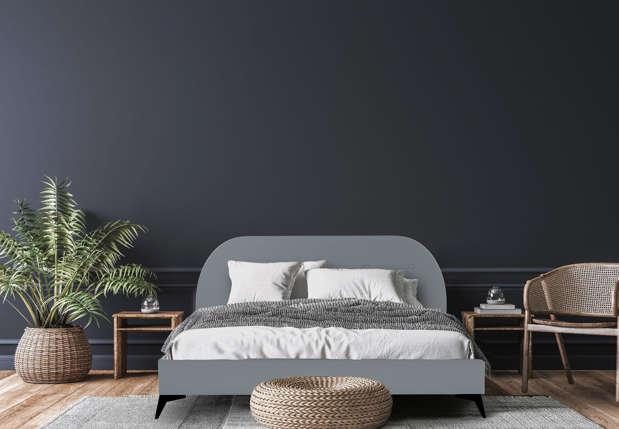 Akila to łóżko, które przykuwa uwagę niebanalnym, zaokrąglonym kształtem wezgłowia. Zagłówek, jak i całe łóżko, obity jest miękką tkaniną typu boucle, dzięki czemu, poza świetną prezencją, doskonale sprawdzi się podczas wieczornej lektury czy niedzielnego śniadania w łóżku, dając wygodne oparcie Twoim plecom. Łóżko nie posiada pojemnika na pościel.