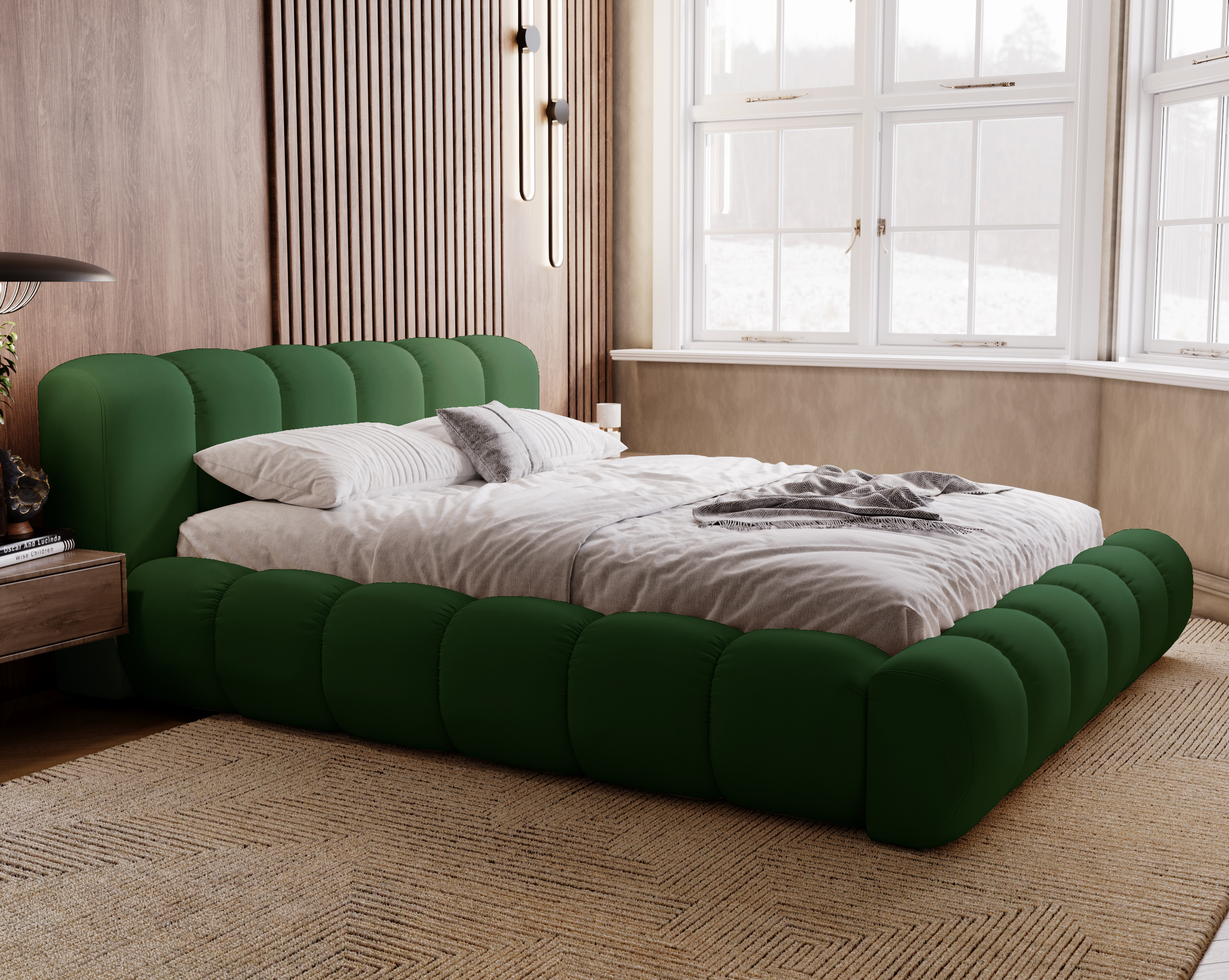 Łóżko tapicerowane z pojemnikiem Bubbly Jupiter butelkowa zieleń