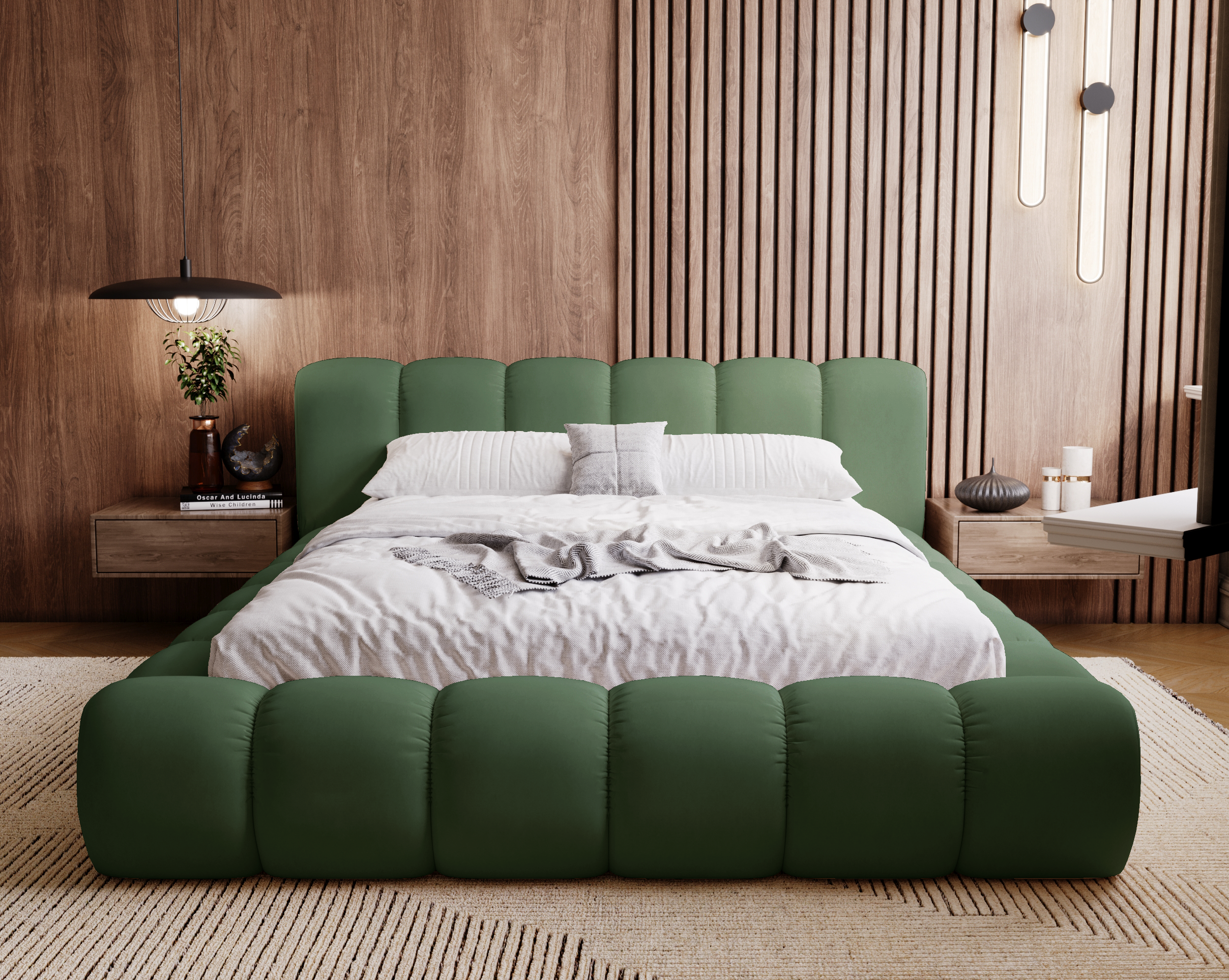 Łóżko Bubbly to nowoczesna propozycja dla osób, które cenią zarówno wyjątkowy design, jak i praktyczne rozwiązania w sypialni. Jego charakterystyczny, obły kształt inspirowany jest miękkimi, puchatymi formami, które nadają wnętrzu przytulności i niepowtarzalnego charakteru. Tapicerowana rama oraz zagłówek składają się z szerokich, miękkich modułów, które nie tylko podnoszą komfort użytkowania, ale także stanowią dekoracyjny element aranżacji.
