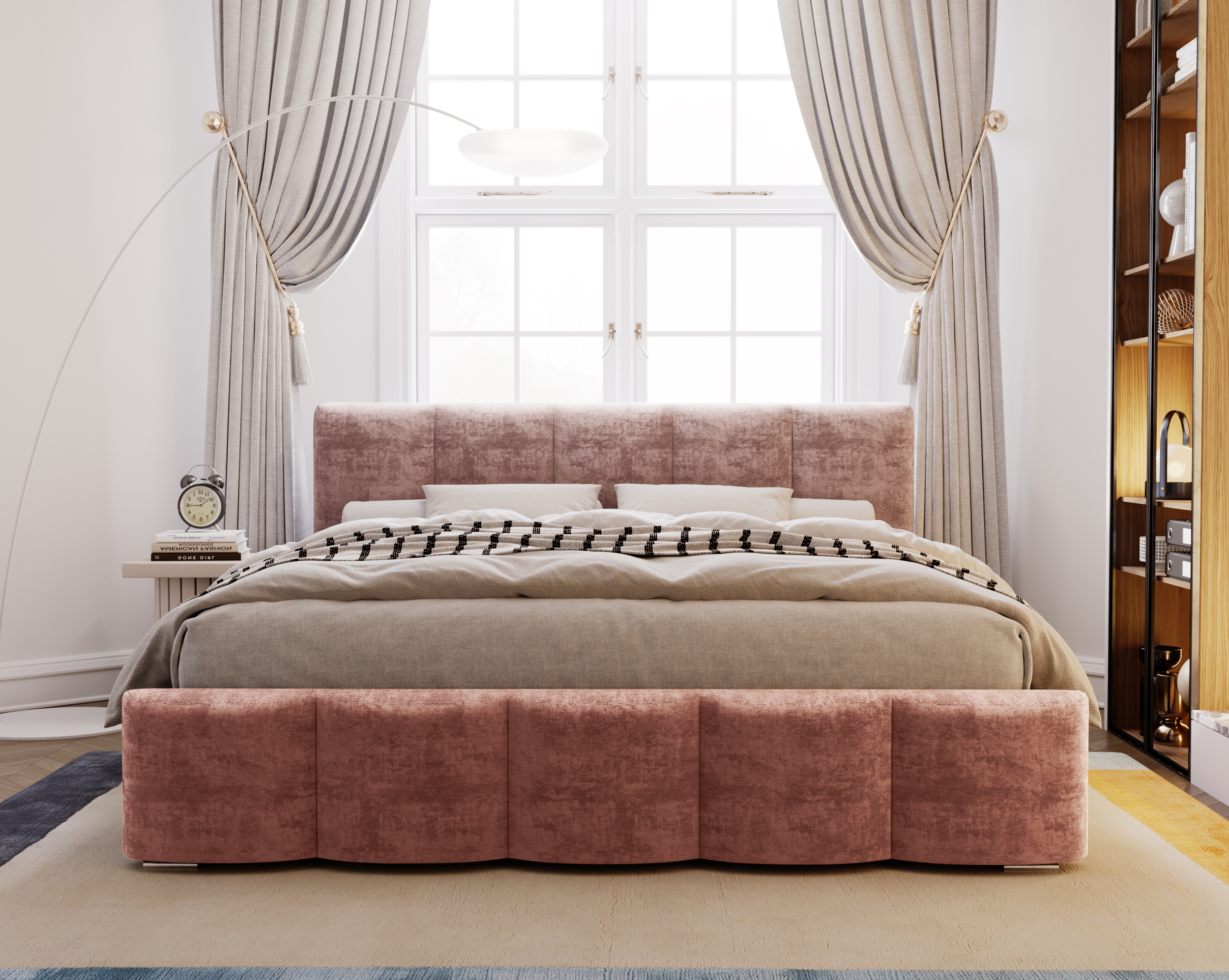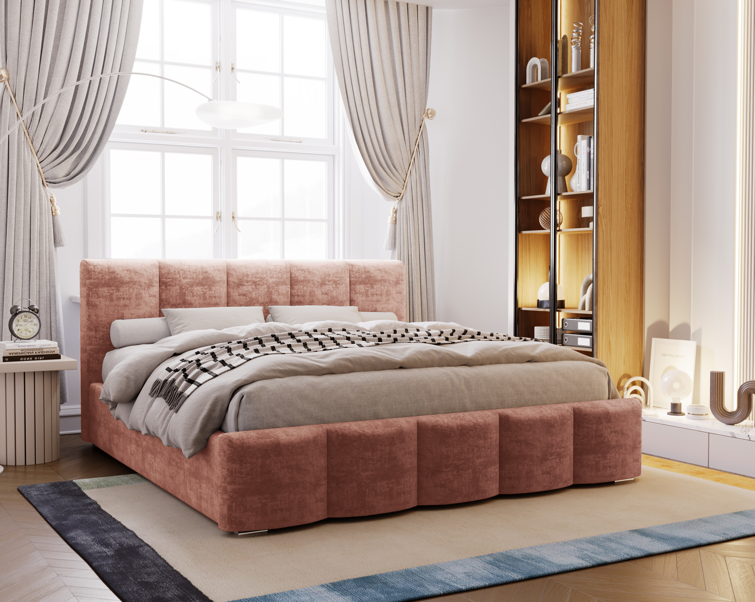 Łóżko Crush to wyjątkowy mebel sypialniany, który łączy w sobie nowoczesny design, elegancką bryłę i praktyczne rozwiązania użytkowe. Charakterystyczna forma łóżka wyróżnia się wyrazistym, modułowym pikowaniem widocznym zarówno na wezgłowiu, jak i w podstawie. Miękkie, obłe linie dodają mu przytulności, a jednocześnie wprowadzają do wnętrza nutę luksusu i elegancji.