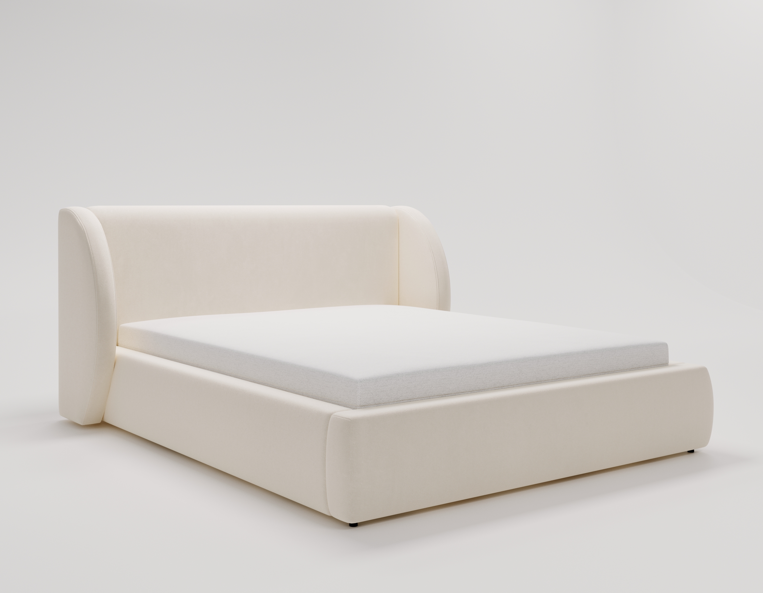 Łóżko Infinity z pojemnikiem to połączenie nowoczesnego minimalizmu i subtelnej elegancji. Jego charakterystycznym elementem jest miękkie, delikatnie zaokrąglone wezgłowie, które nadaje bryle lekkości, a jednocześnie wprowadza do wnętrza atmosferę komfortu i spokoju. Dzięki temu model idealnie wpisuje się zarówno w aranżacje nowoczesne, jak i klasyczne, stając się centralnym punktem sypialni.