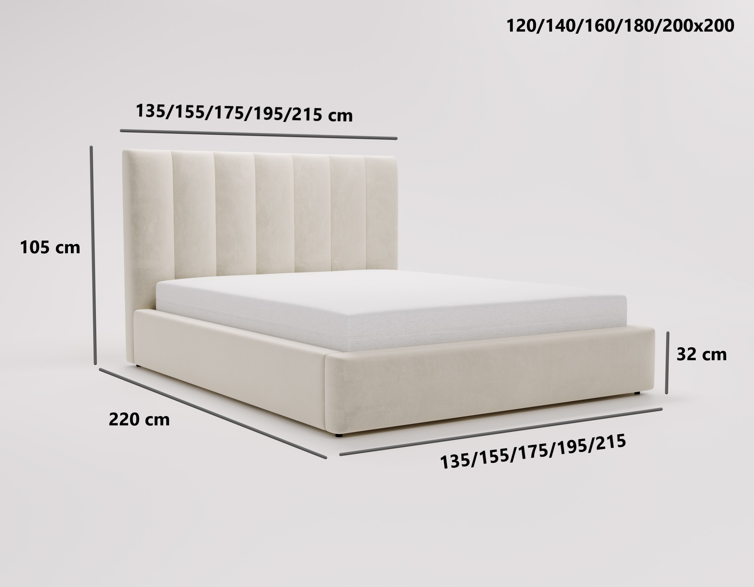 120x200 / 140x200 / 160x200 / 180x200 / 200x200 cm