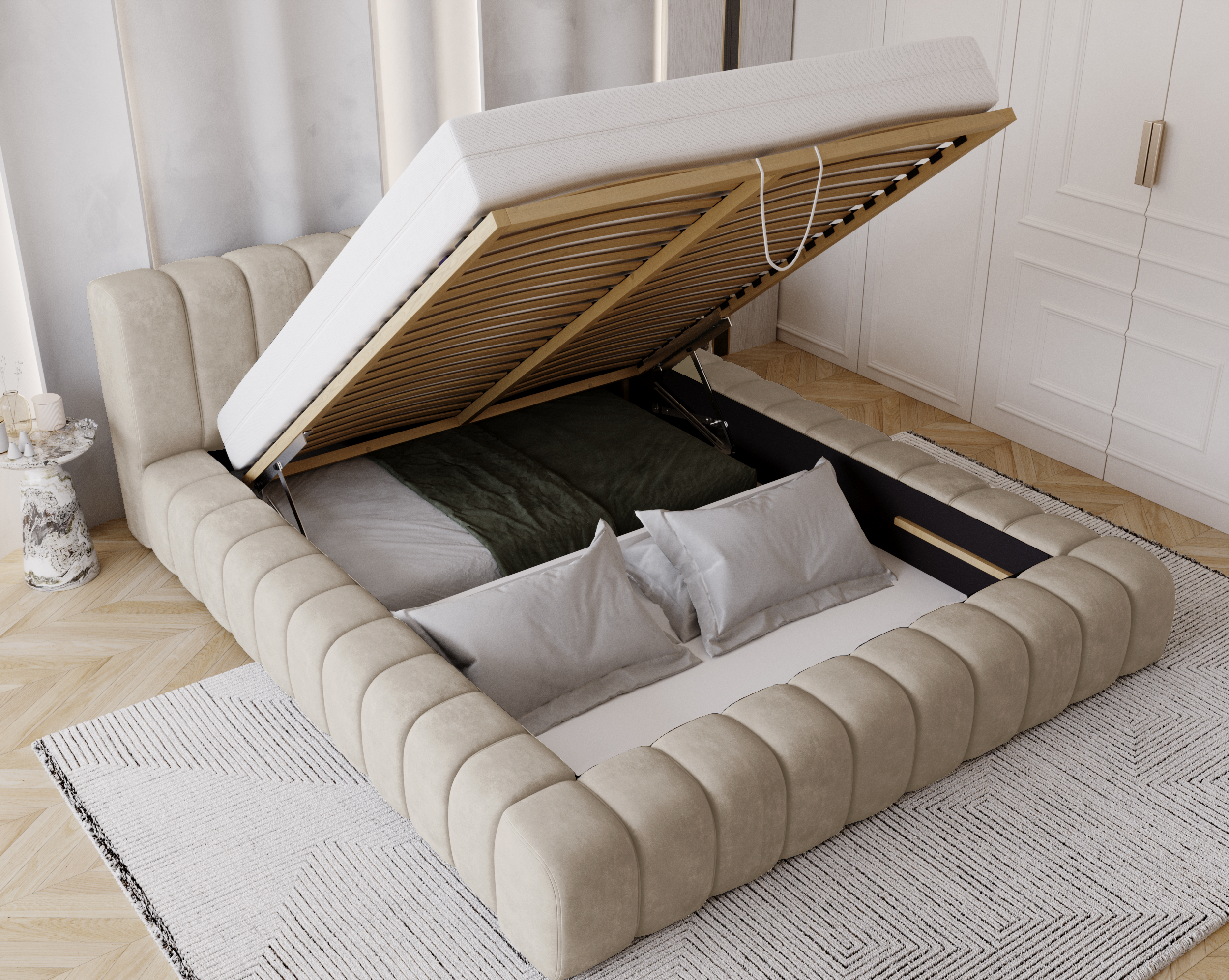 Łóżko tapicerowane z pojemnikiem Pretty beżowe