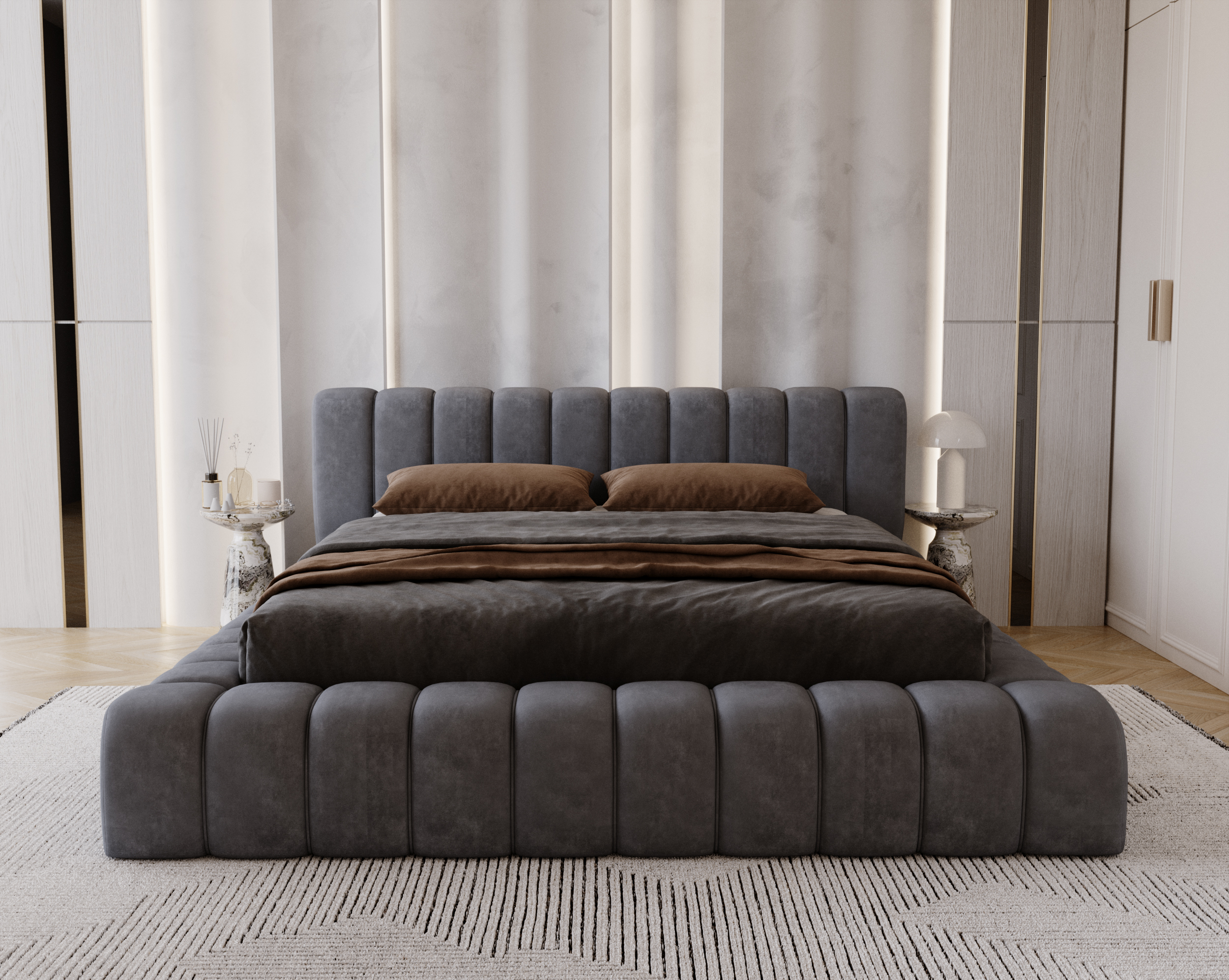 Łóżko Pretty to nowoczesna i zarazem wyjątkowo przytulna propozycja do sypialni. Jego charakterystyczna, miękka bryła z efektownymi, pionowymi przeszyciami na wezgłowiu i ramie nadaje mu niepowtarzalnego charakteru. Obszerne, tapicerowane elementy sprawiają, że mebel prezentuje się solidnie i designersko, jednocześnie wprowadzając do wnętrza poczucie komfortu i elegancji.