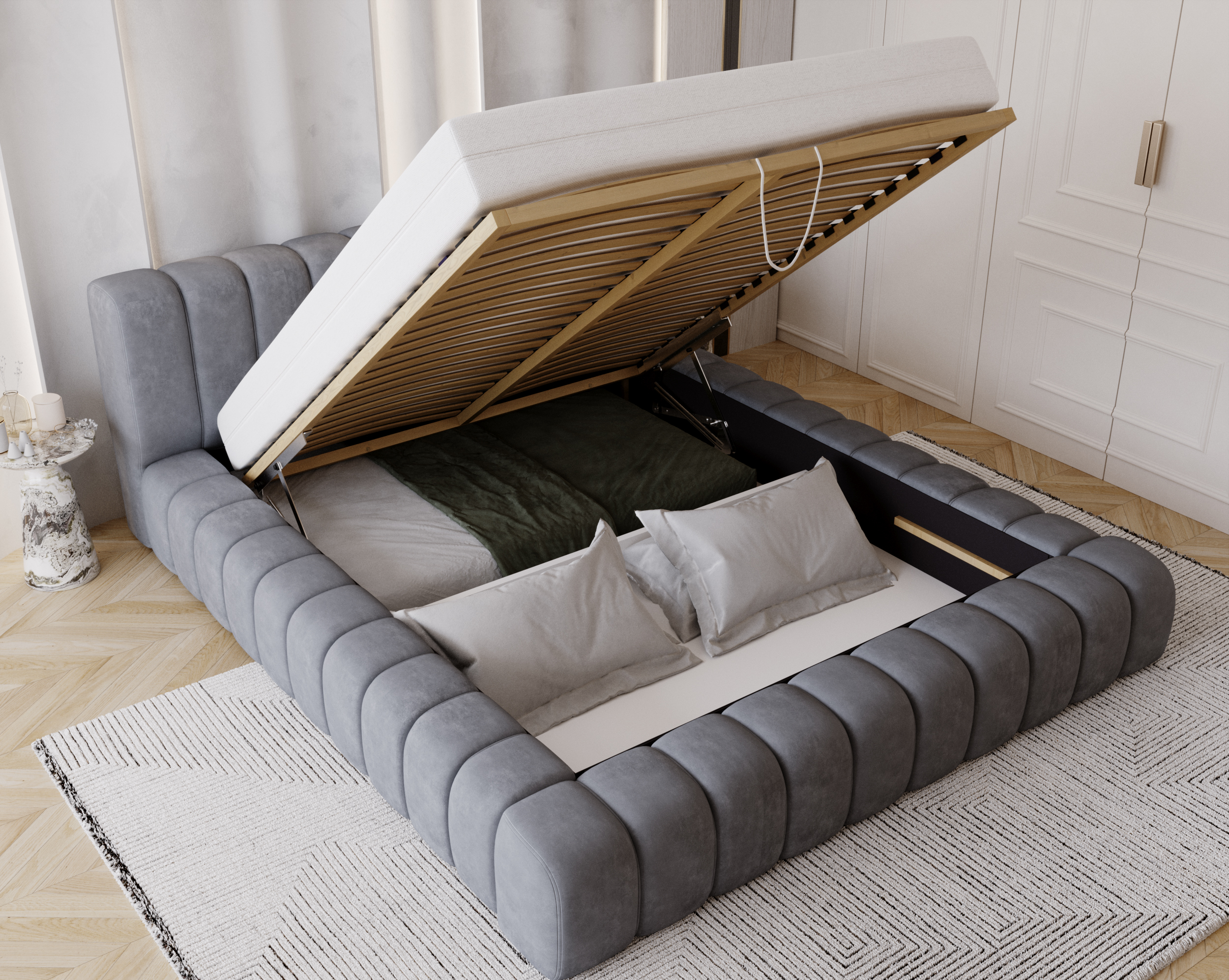 Łóżko tapicerowane z pojemnikiem Pretty grafit