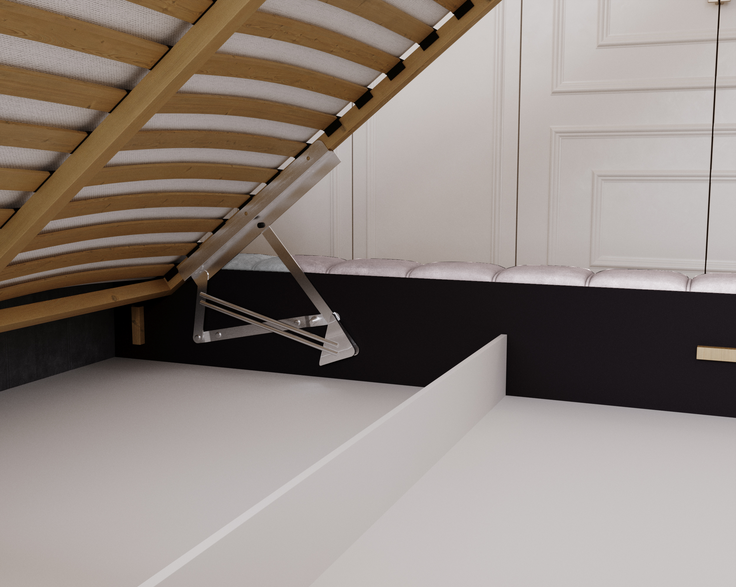 Łóżko Pretty wyposażone zostało w pojemny schowek na pościel, do którego dostęp ułatwia solidny, podnoszony stelaż. Dostępne jest w kilku rozmiarach – 120x200, 140x200, 160x200 oraz 180x200 cm – co pozwala idealnie dopasować je do przestrzeni i indywidualnych potrzeb.