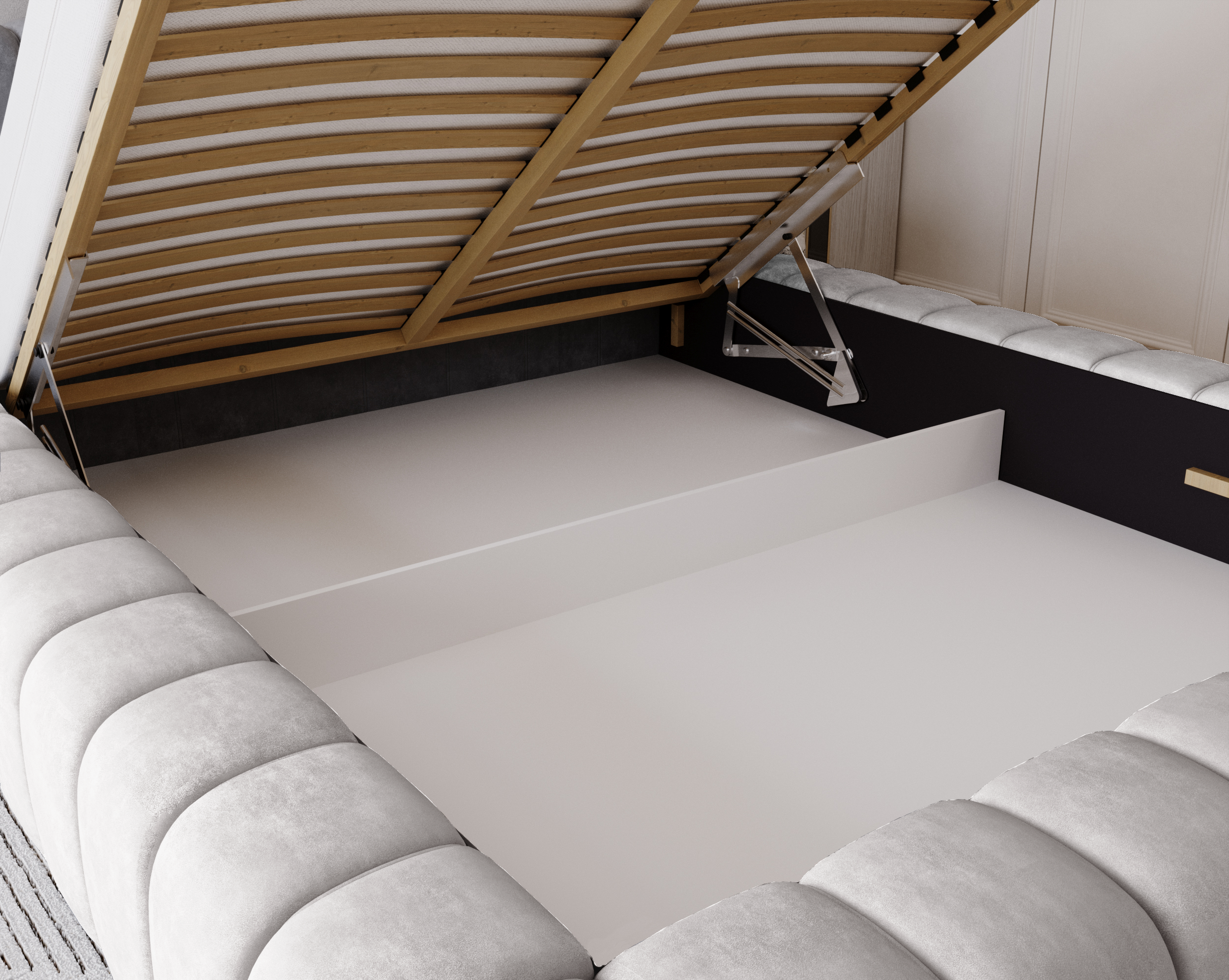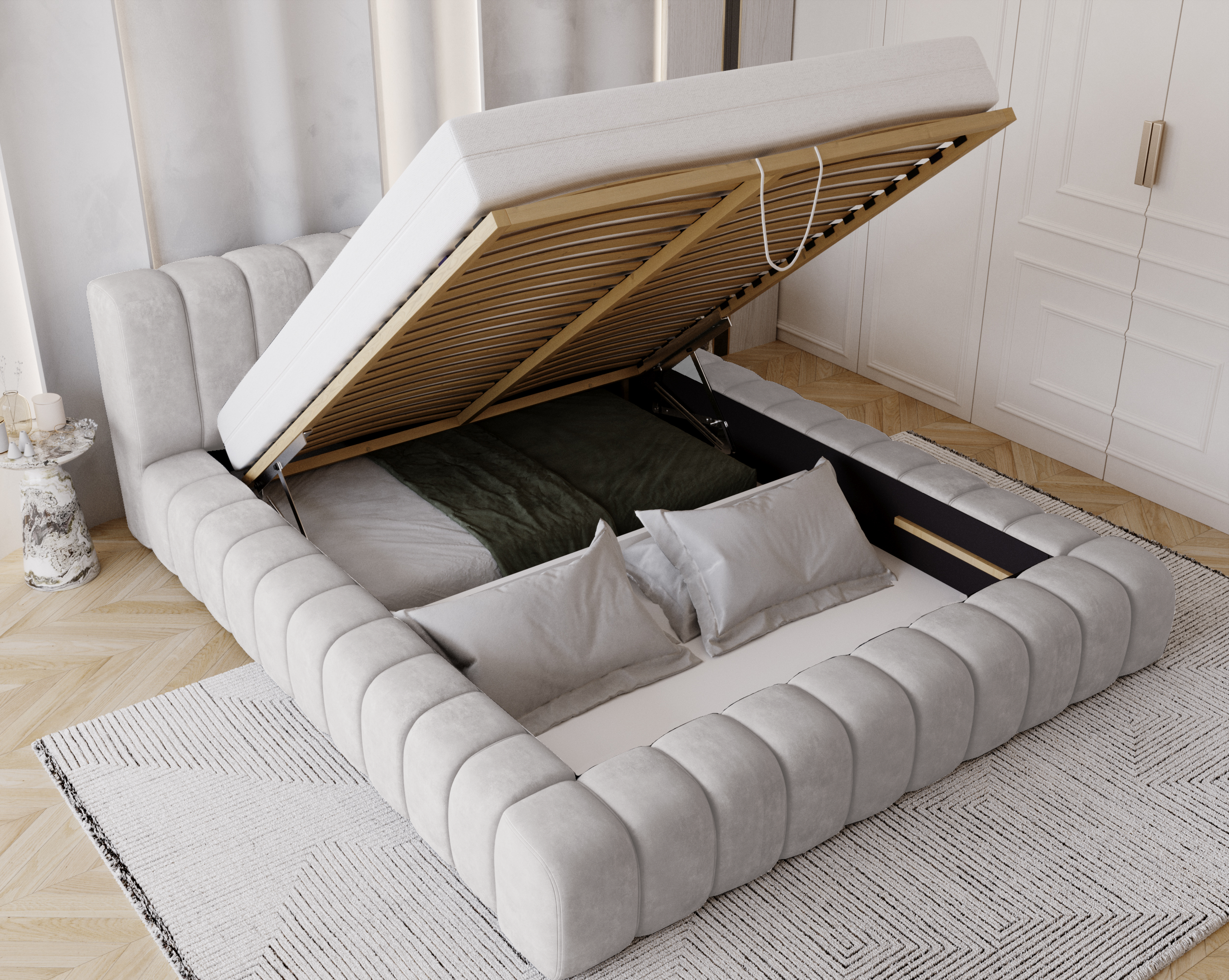Łóżko tapicerowane z pojemnikiem Pretty jasnoszare