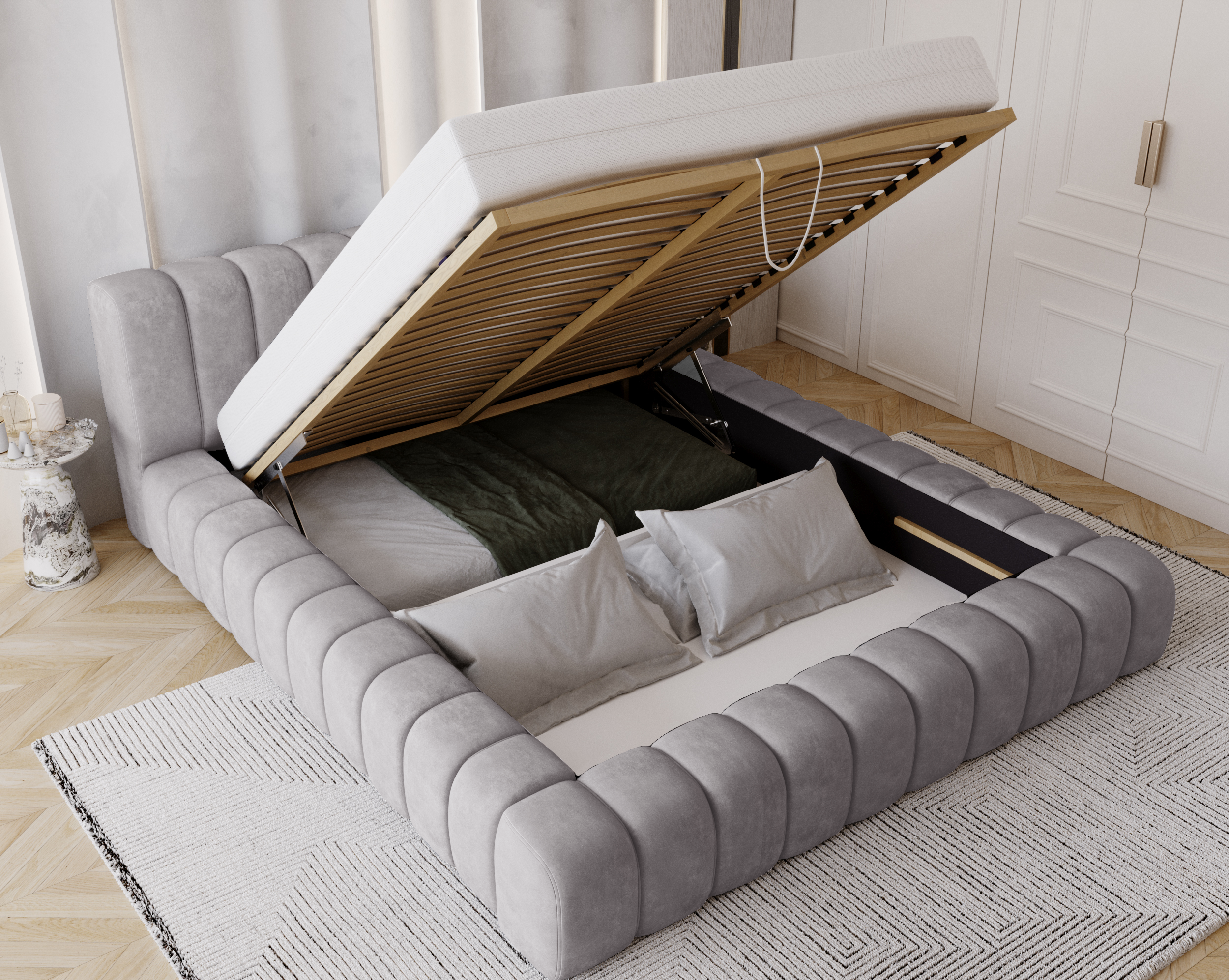 Łóżko tapicerowane z pojemnikiem Pretty szare