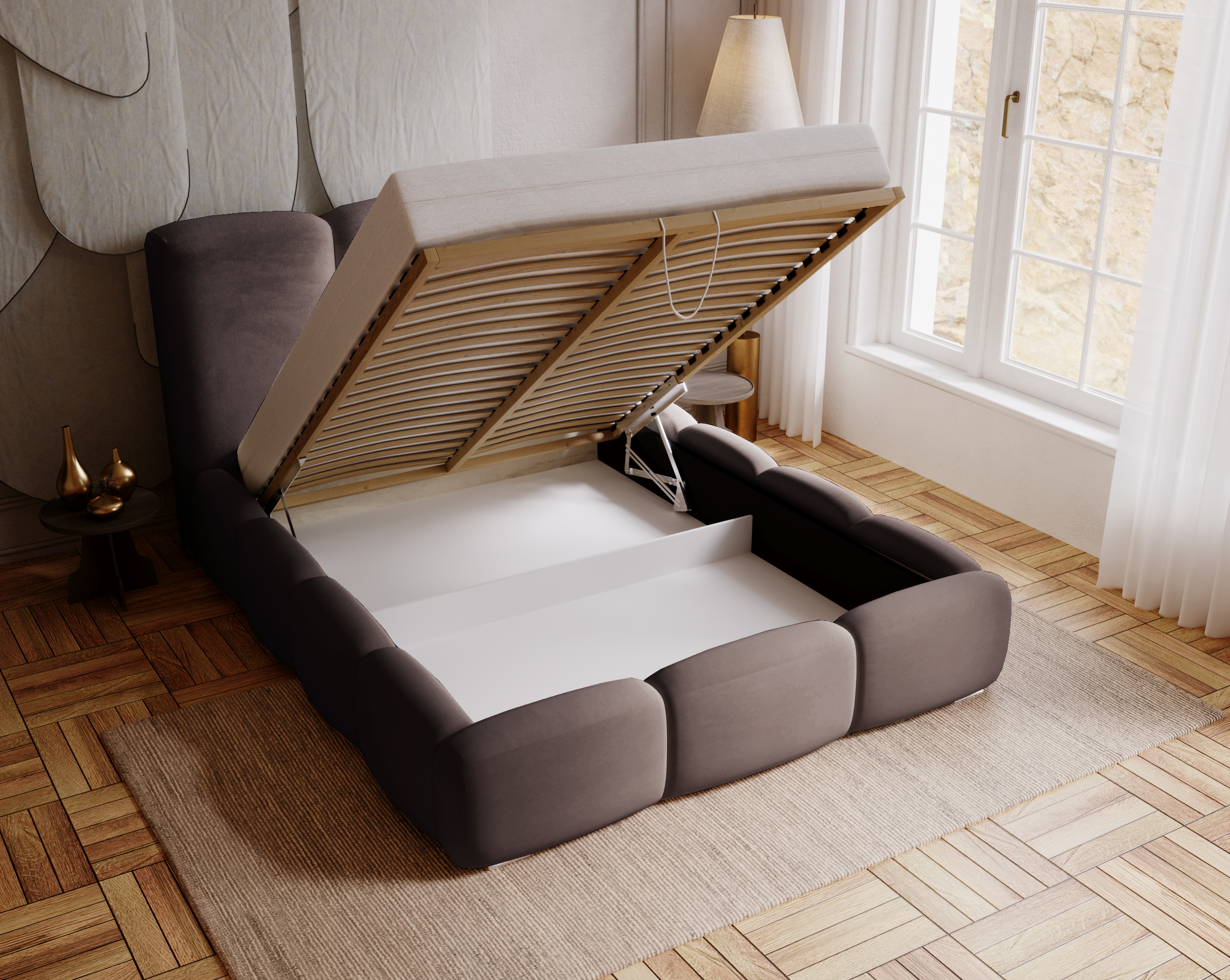 Łóżko tapicerowane z pojemnikiem Roll czekoladowy brąz