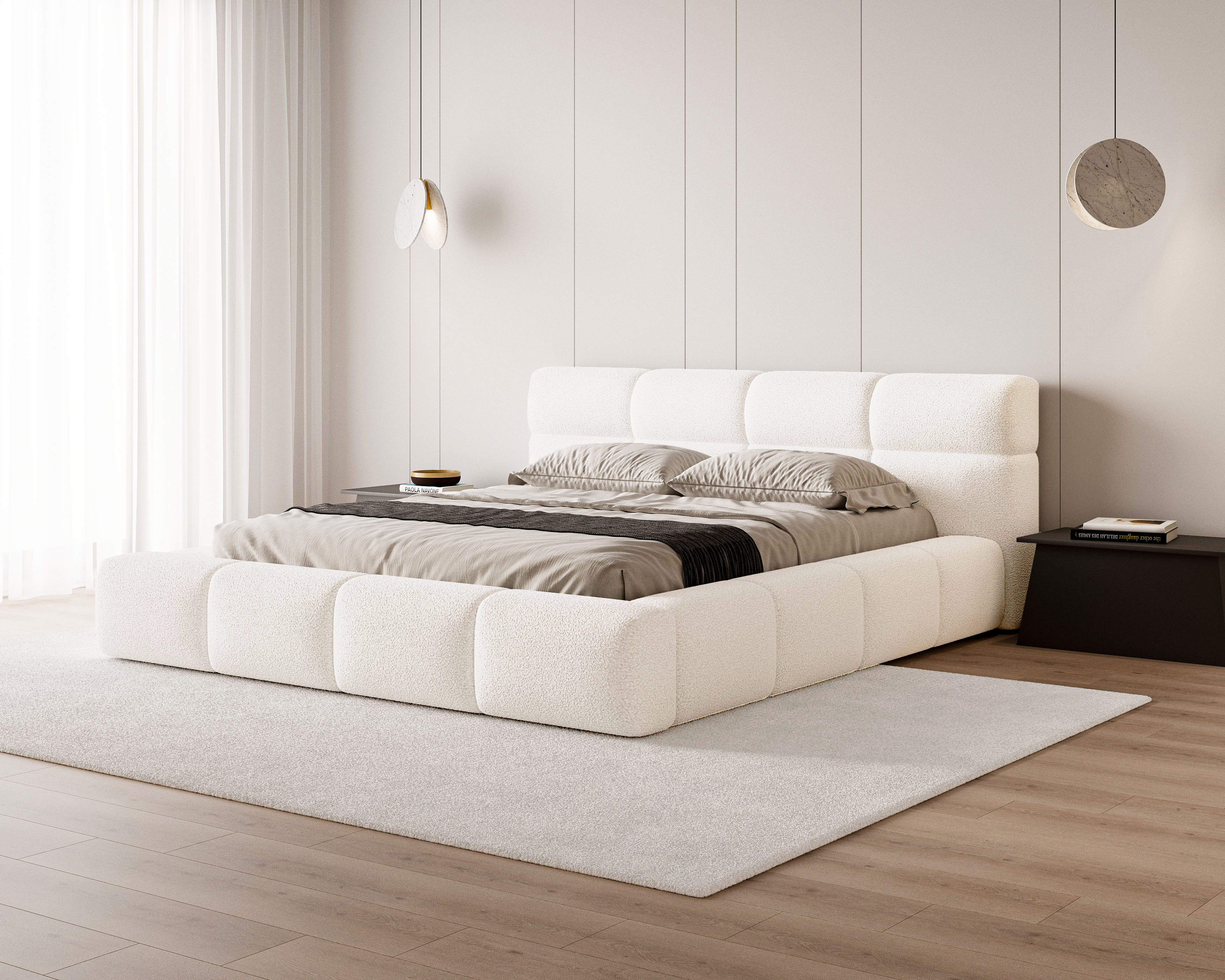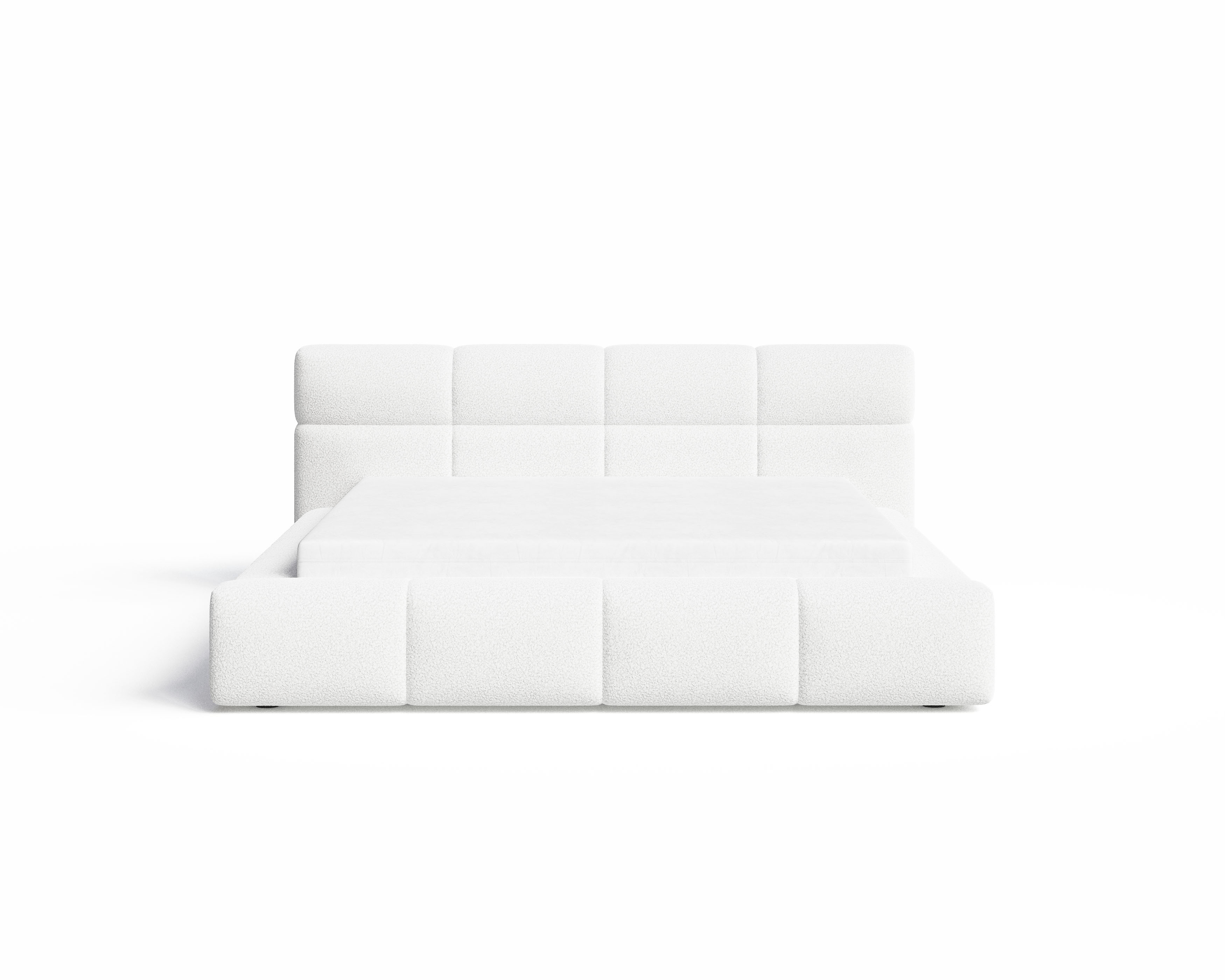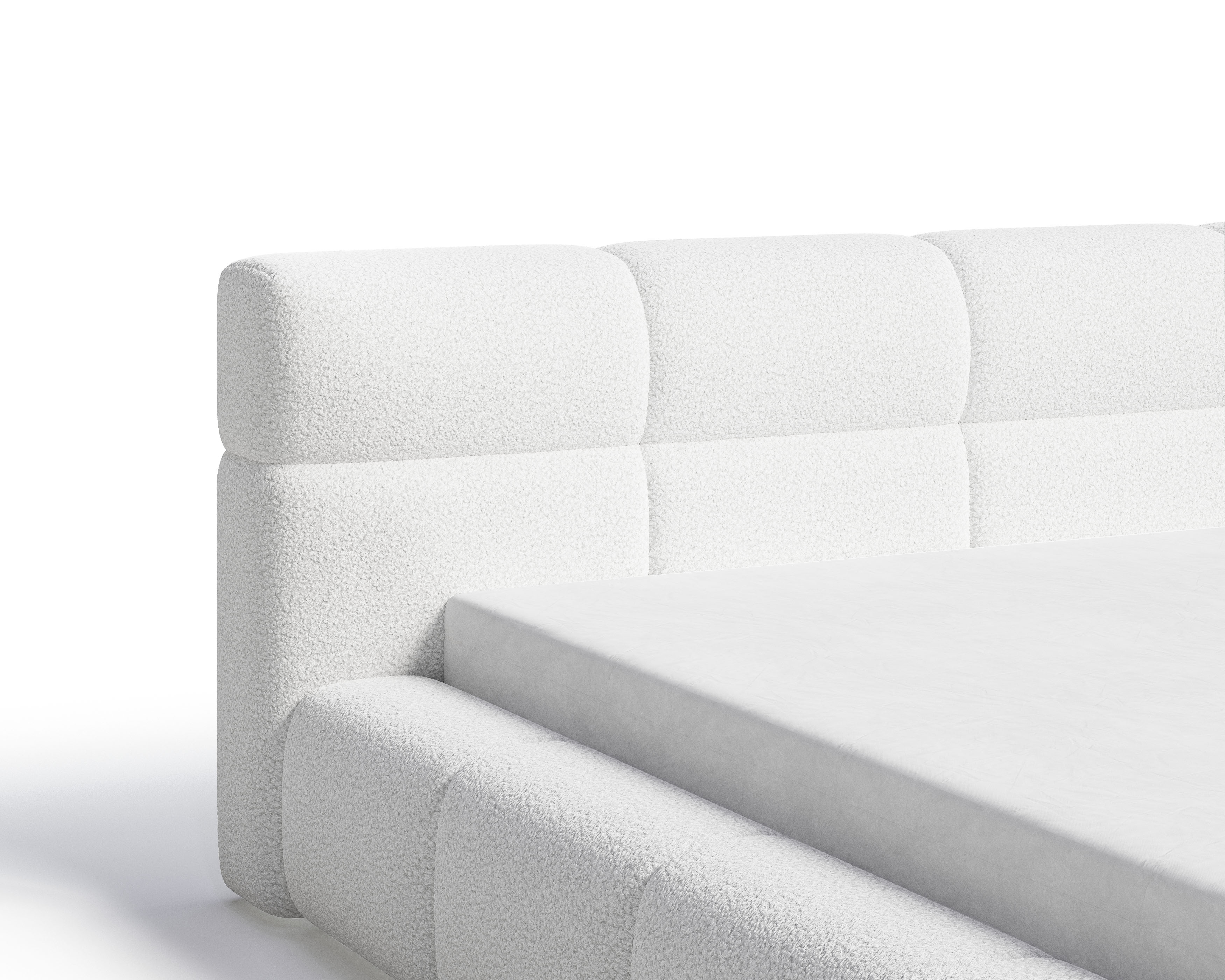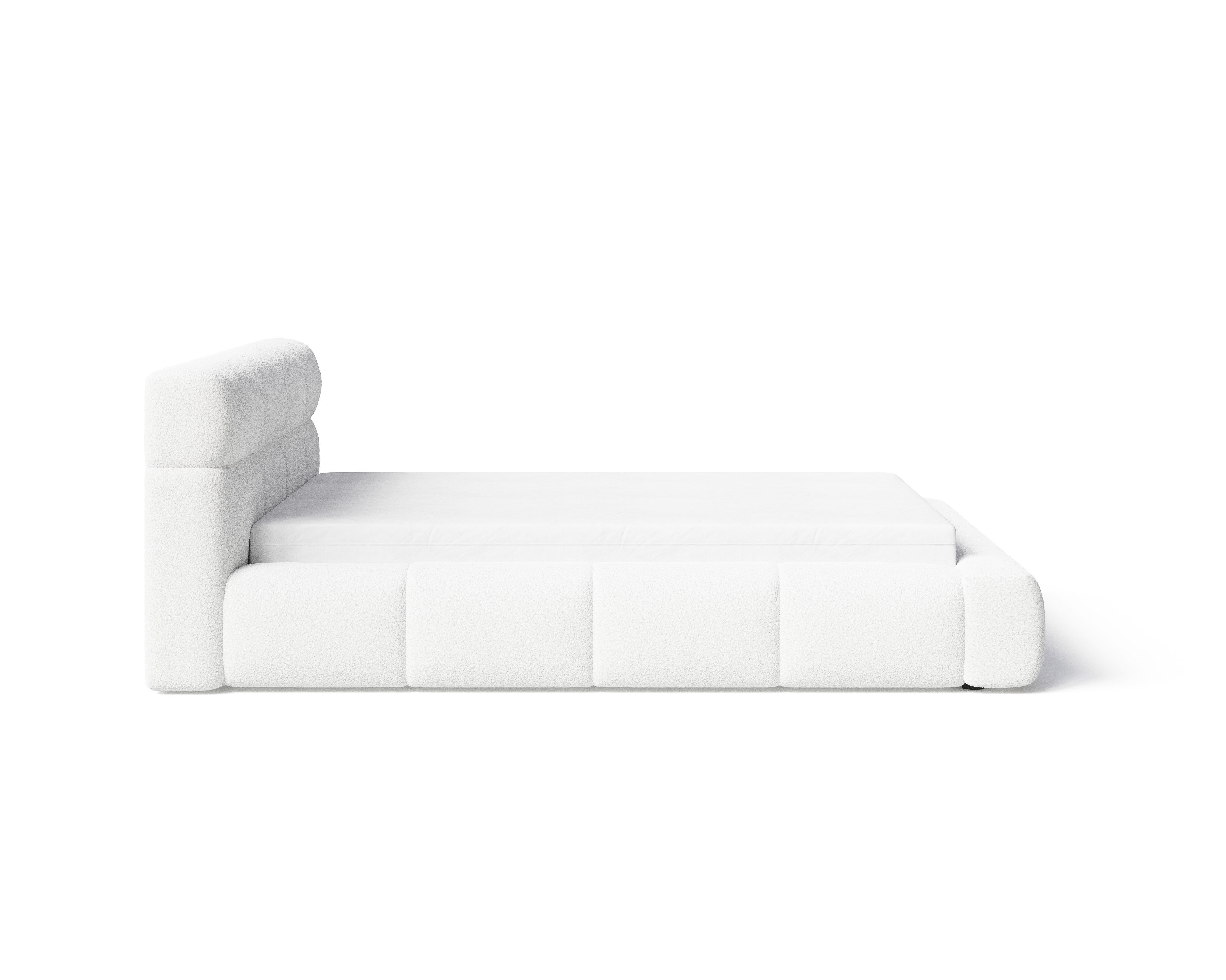 Łóżko tapicerowane z pojemnikiem Sleek boucle białe