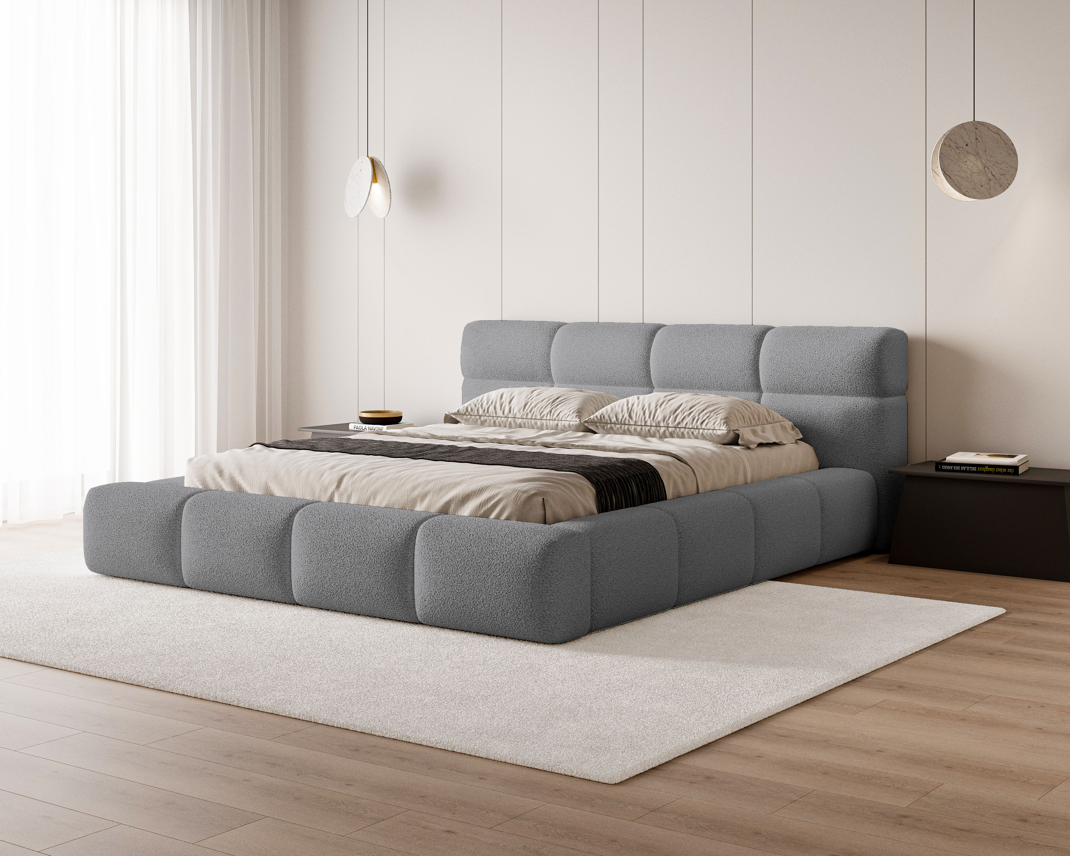 Łóżko tapicerowane z pojemnikiem Sleek boucle szare