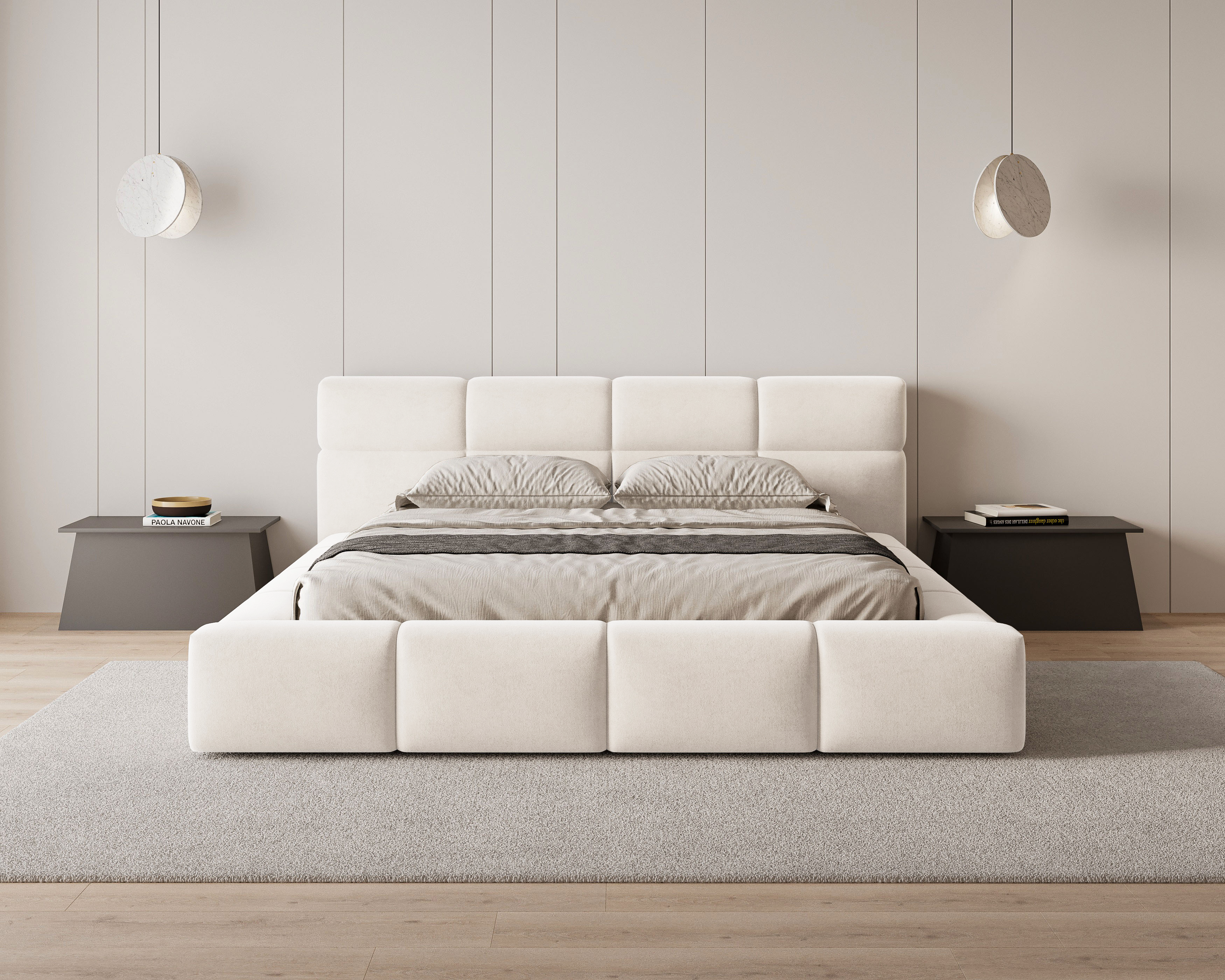 Łóżko Sleek z pojemnikiem to propozycja dla miłośników nowoczesnego minimalizmu i eleganckiej prostoty. Jego unikatowy design opiera się na geometrycznej formie oraz subtelnych przeszyciach, które nadają bryle wyrafinowanego charakteru, nie przytłaczając przestrzeni. Niskie, masywne boki i harmonijnie zaprojektowany zagłówek tworzą spójną, proporcjonalną całość, która doskonale wpisuje się w estetykę współczesnych wnętrz – od loftowych po skandynawskie i modern classic.