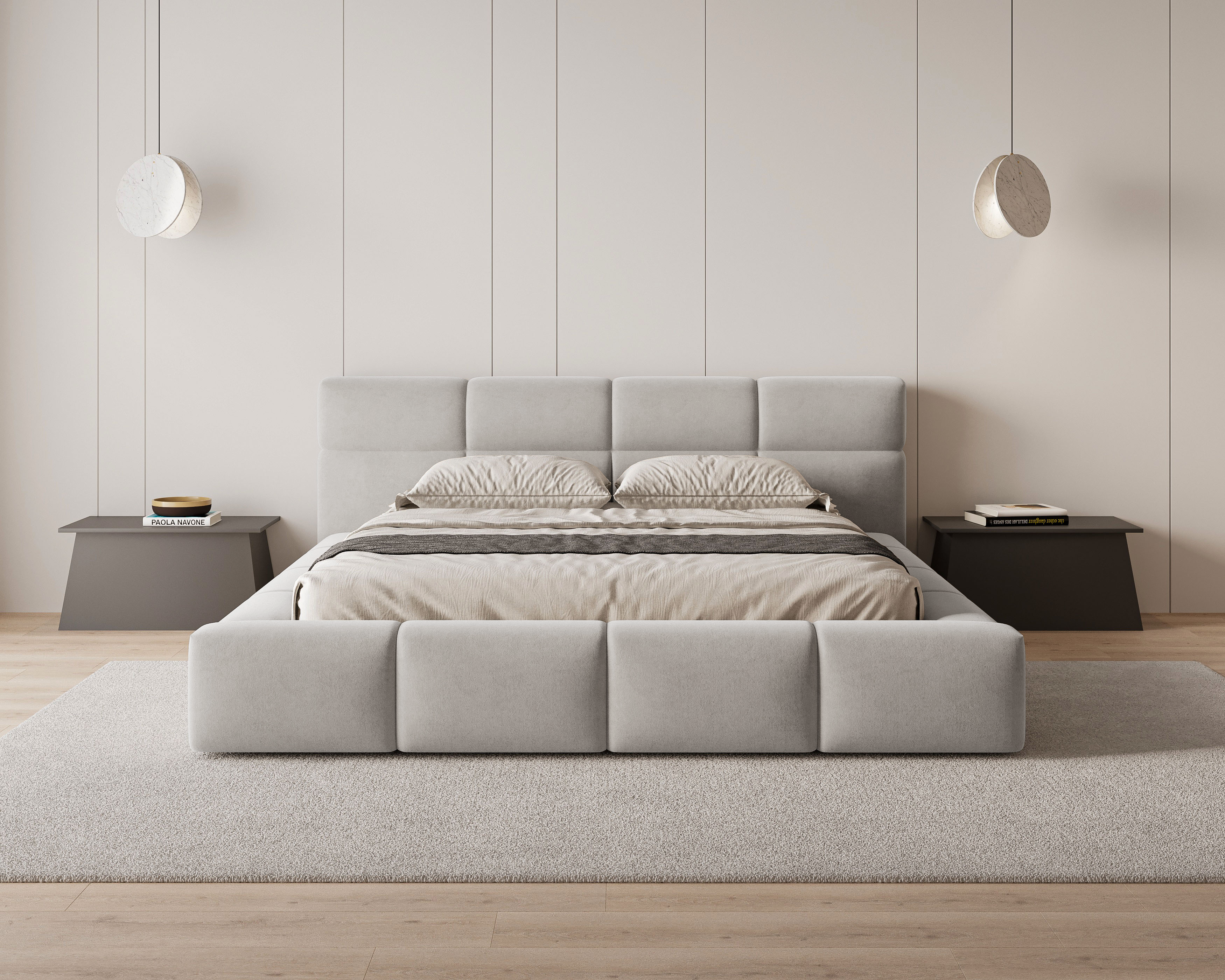 Łóżko tapicerowane z pojemnikiem Sleek jasnoszare