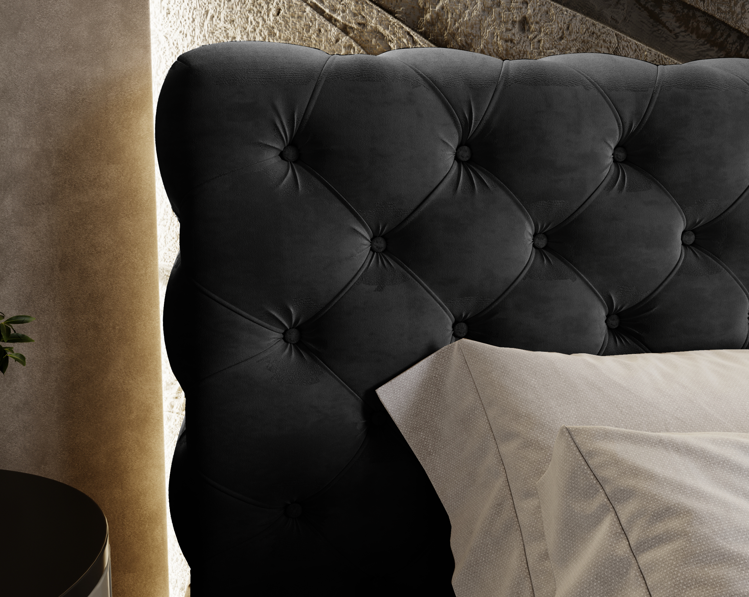 Największą ozdobą łóżka jest wysokie, pikowane wezgłowie wykończone guzikami, które tworzą efektowny, symetryczny wzór. Stabilna rama o pełnej bryle podkreśla elegancję mebla, jednocześnie gwarantując trwałość na lata. Łóżko wyposażone jest w pojemny schowek na pościel, do którego dostęp umożliwia solidny, podnoszony stelaż.